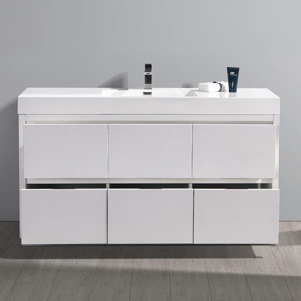 Fresca FCB8460WH-I Fresca Valencia 60" Glossy White Free Standing Modern Bathroom Vanity