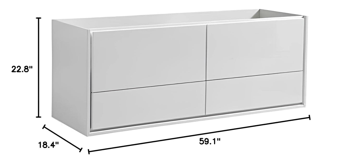 Fresca FCB9260WH-D Fresca Catania 60" Glossy White Wall Hung Double Sink Modern Bathroom Cabinet