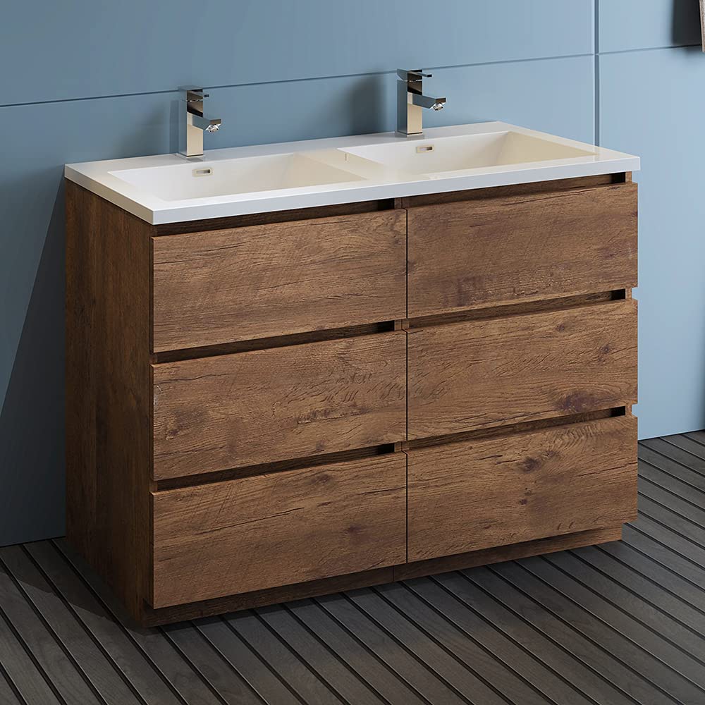 Fresca FCB93-2424RW-D-I Fresca Lazzaro 48" Rosewood Free Standing Modern Bathroom Cabinet w/ Integrated Double Sink