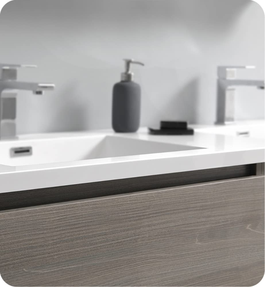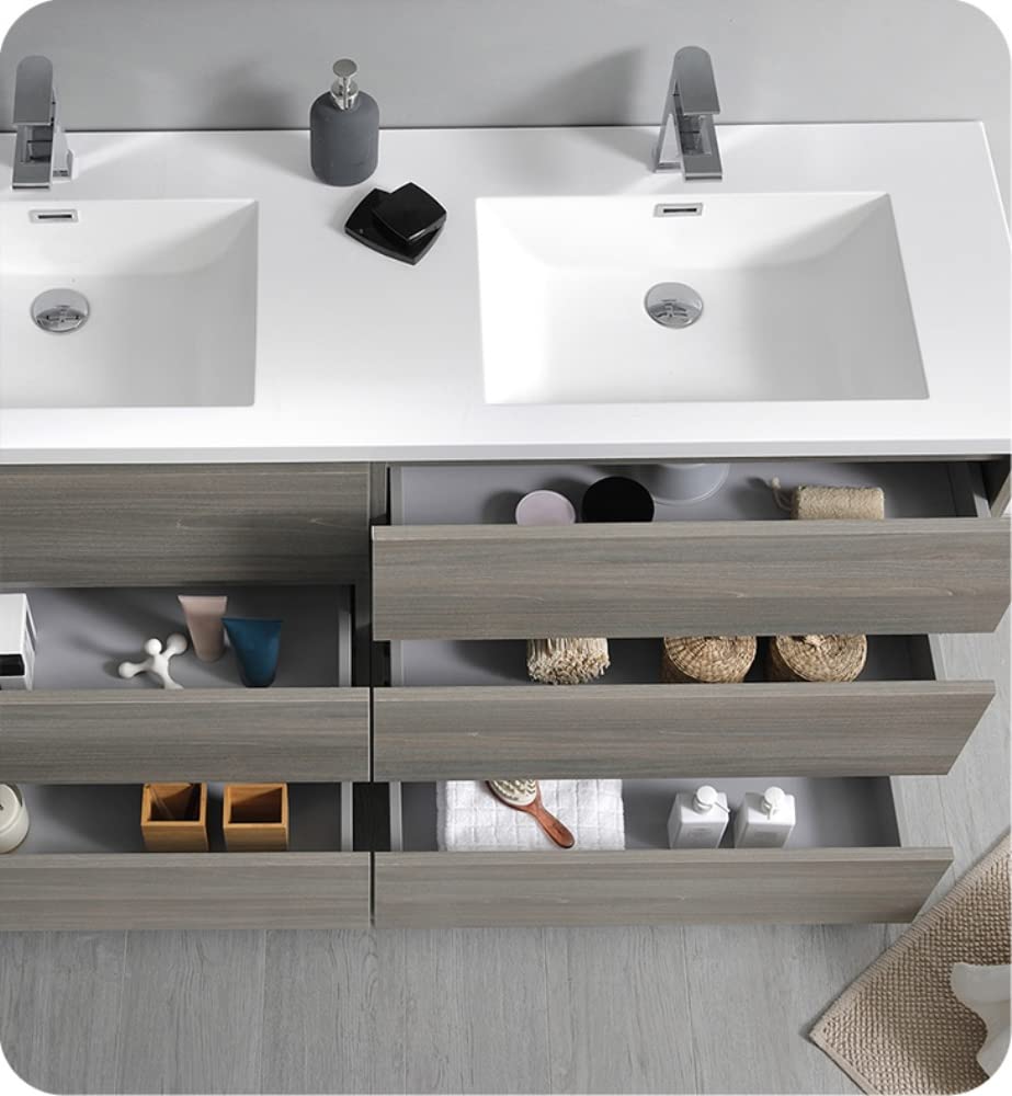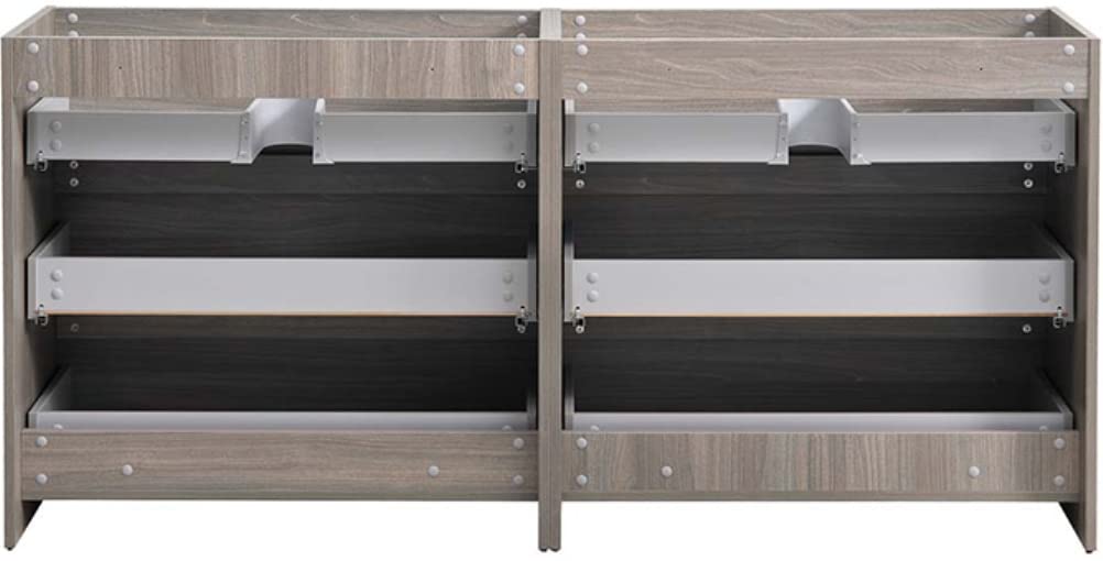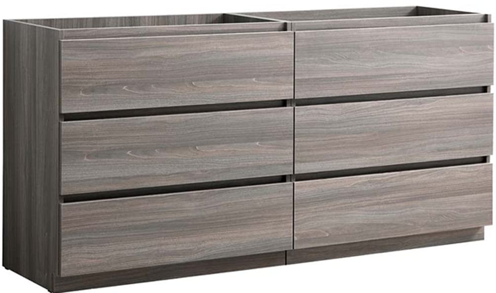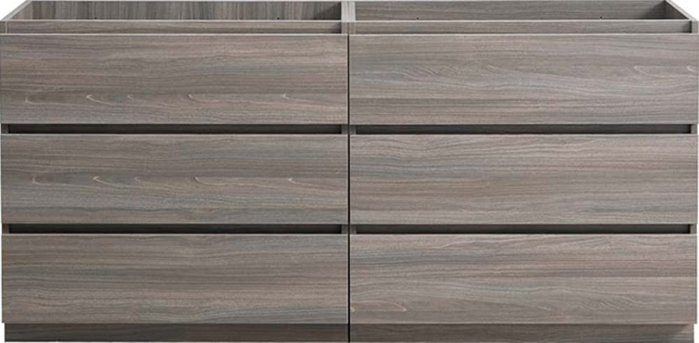 With its chic Gray Wood finish, the Fresca Lazzaro Freestanding Modern Double Sink Bathroom Cabinet is the ideal combination of style and function. Six spacious soft-closing wood drawers offer wonderful storage space, perfect for keeping all of your daily essentials out of sight and the family organized. The drawers feature push-release hardware, offering a streamlined front that beautifully complements the minimalist design. This modern cabinet will enhance any décor and is available in multiple sizes and finishes. It includes installation hardware.