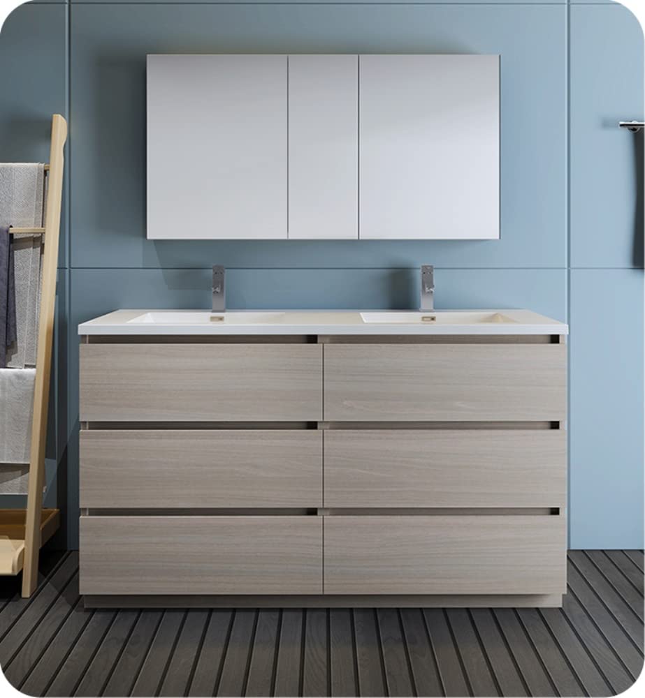 Fresca FCB93-3030MGO-D Fresca Lazzaro 60" Gray Wood Free Standing Double Sink Modern Bathroom Cabinet