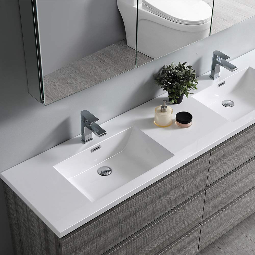 Fresca FCB93-3636RW-D-I Fresca Lazzaro 72" Rosewood Free Standing Modern Bathroom Cabinet w/ Integrated Double Sink