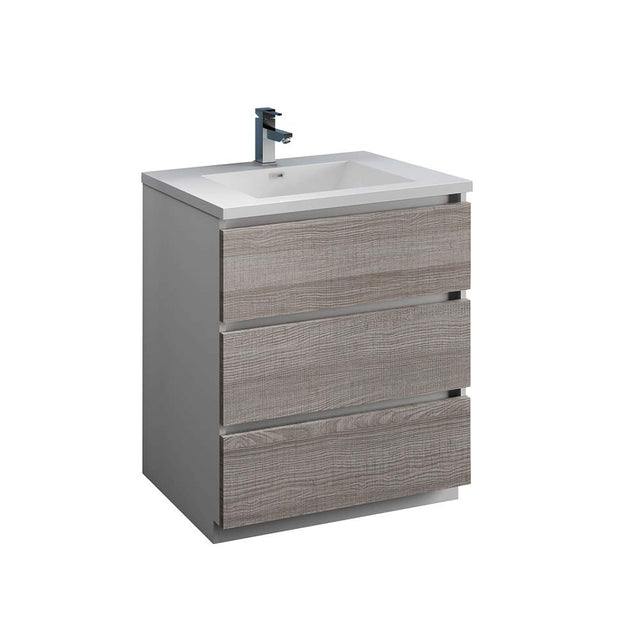 Fresca FCB9330HA-I Fresca Lazzaro 30" Glossy Ash Gray Free Standing Modern Bathroom Cabinet w/ Integrated Sink