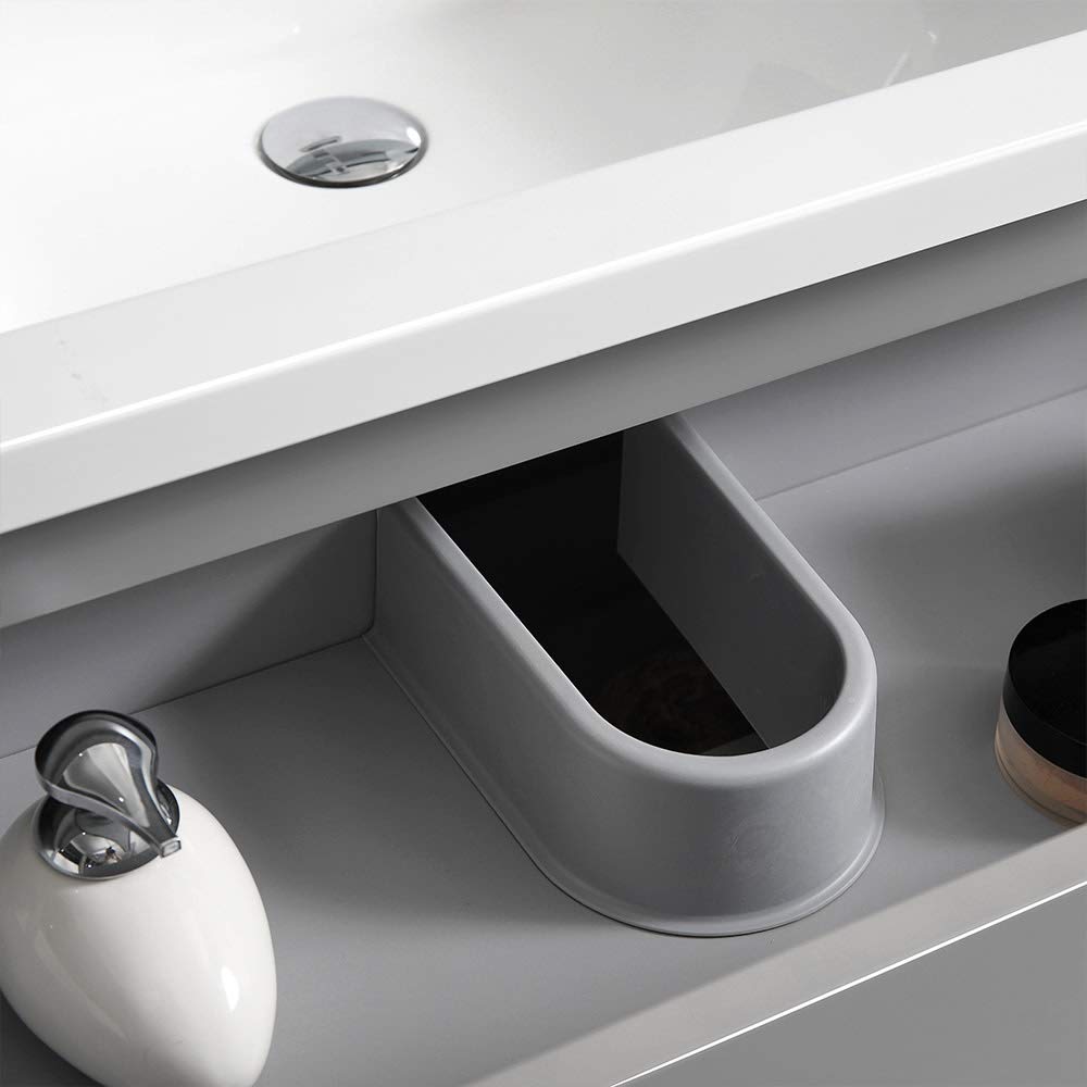 With its chic Ash Gray finish, the Fresca Lazzaro Freestanding Modern Bathroom Cabinet with Integrated Sink is the ideal combination of style and function. The cabinet offers great storage with soft-closing drawers, just perfect for organizing all of your daily essentials. The drawers feature push-release hardware, offering a streamlined front that beautifully complements the minimalist design. Gracing the top of the cabinet is an eye-catching white acrylic-resin countertop/sink with smooth edges and integrated overflow. The sink has been pre-drilled to accommodate a single hole faucet (sold separately). This modern cabinet with integrated sink will enhance any décor and is available in multiple sizes and finishes. It includes installation hardware.