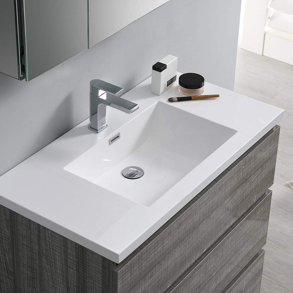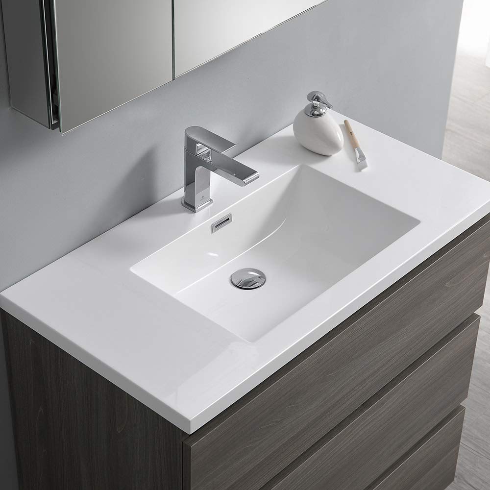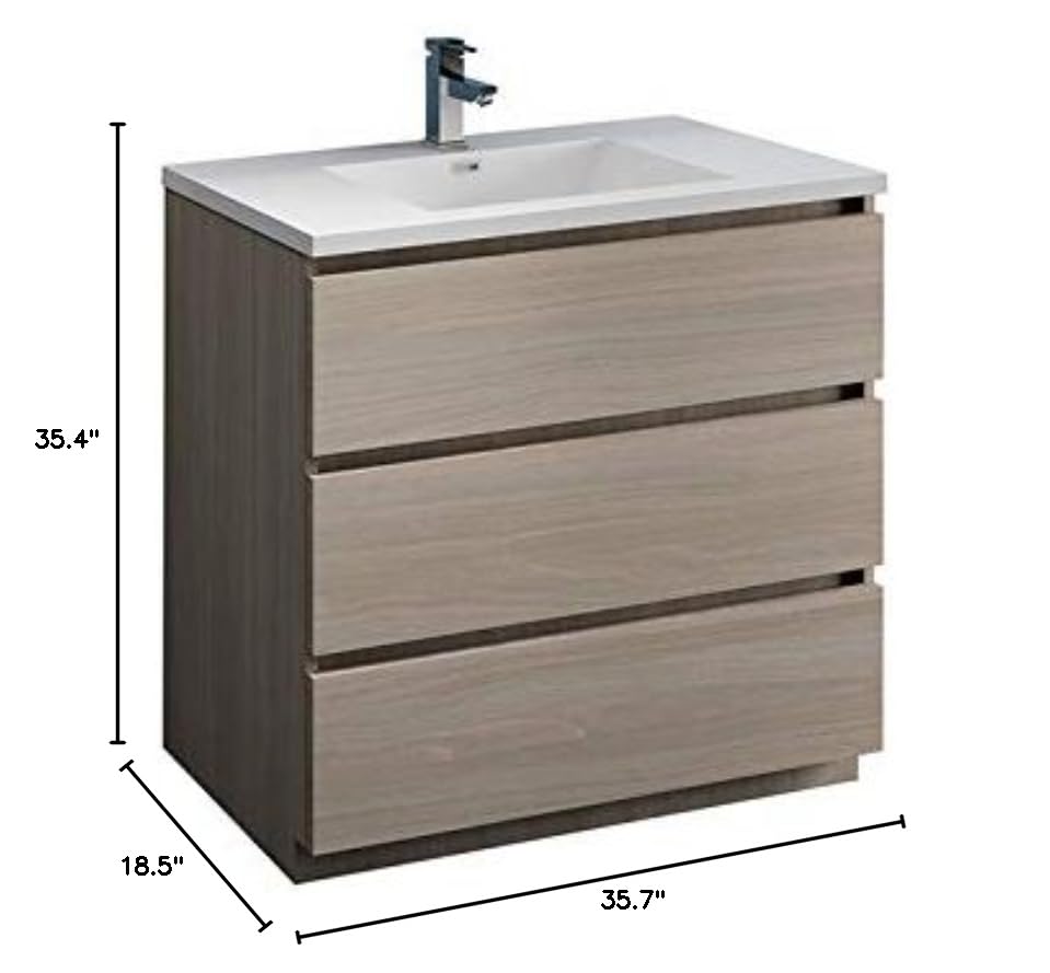 Fresca FCB9336MGO-I Fresca Lazzaro 36" Gray Wood Free Standing Modern Bathroom Cabinet w/ Integrated Sink