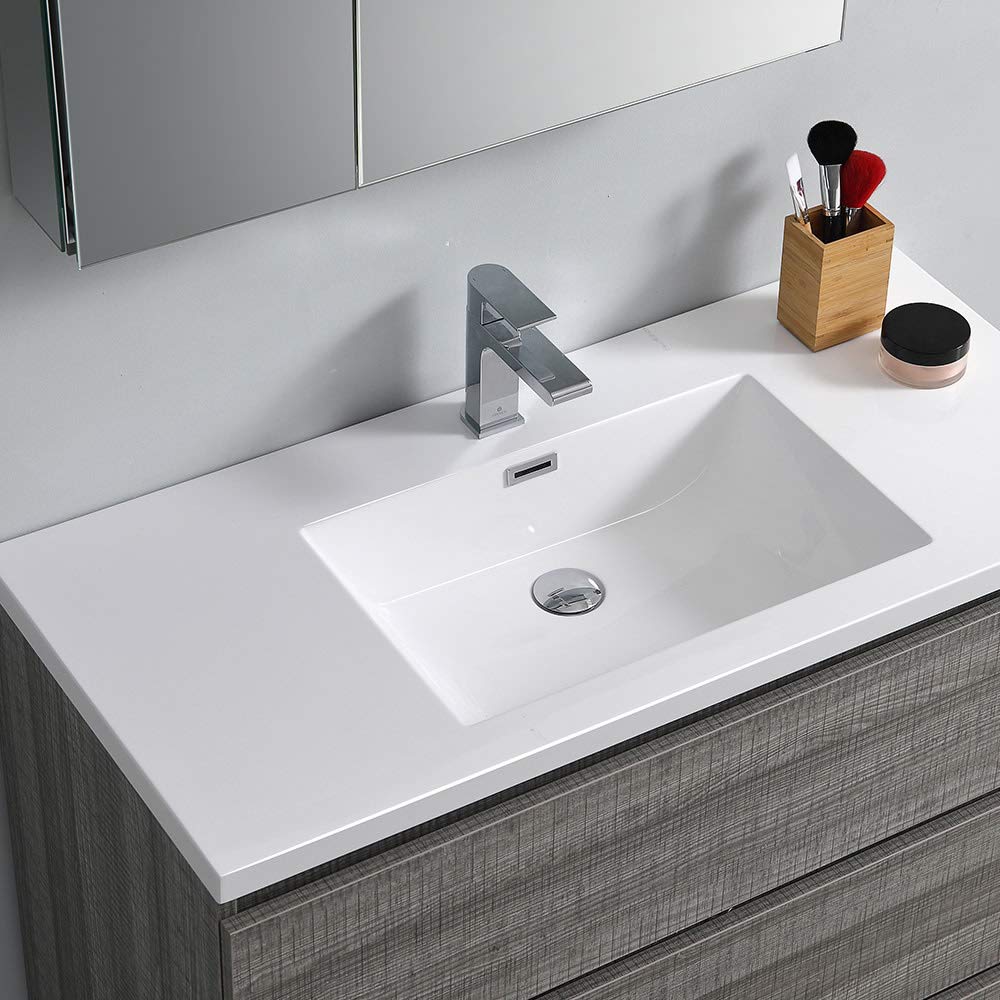 - Sink materials: Highly durable acrylic-resin sink with integrated rectangular overflow