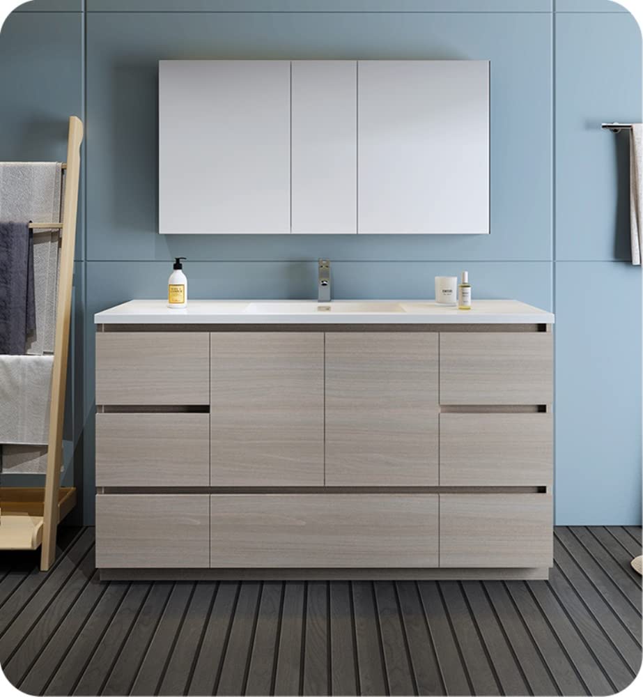 Fresca FCB9360MGO-S Fresca Lazzaro 60" Gray Wood Free Standing Single Sink Modern Bathroom Cabinet