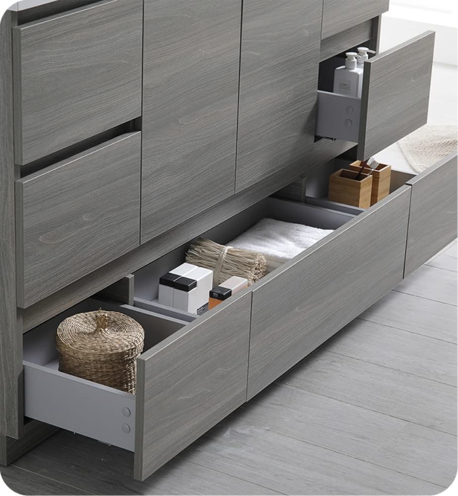 With its chic Gray Wood finish, the Fresca Lazzaro Freestanding Modern Bathroom Cabinet is the ideal combination of style and function. Spacious soft-closing wood drawers can hold all of your bathroom essentials, while a roomy under-the-sink compartment provides additional space for tucking away towels or storage baskets. The drawers and doors feature push-release hardware, offering a streamlined front that beautifully complements the minimalist design. This modern cabinet will enhance any décor and is available in multiple sizes and finishes. It includes installation hardware.