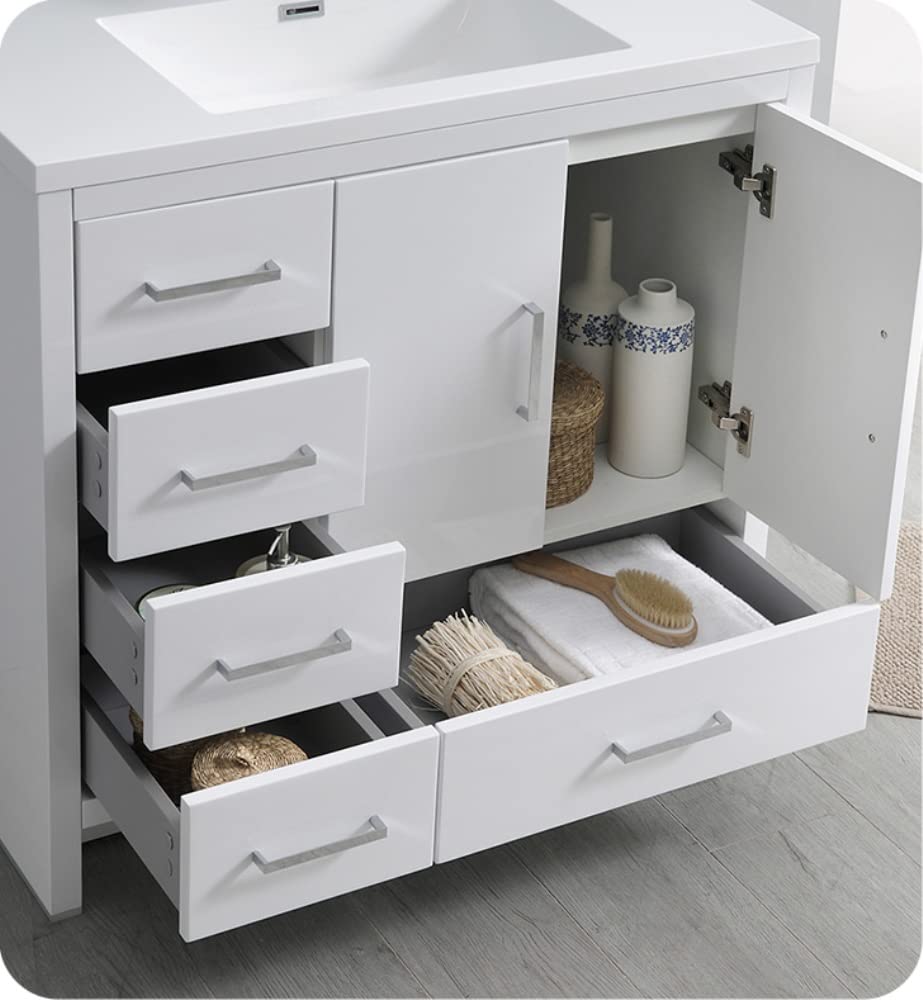 Fresca FCB9436WH-L Fresca Imperia 36" Glossy White Free Standing Modern Bathroom Cabinet - Left Version