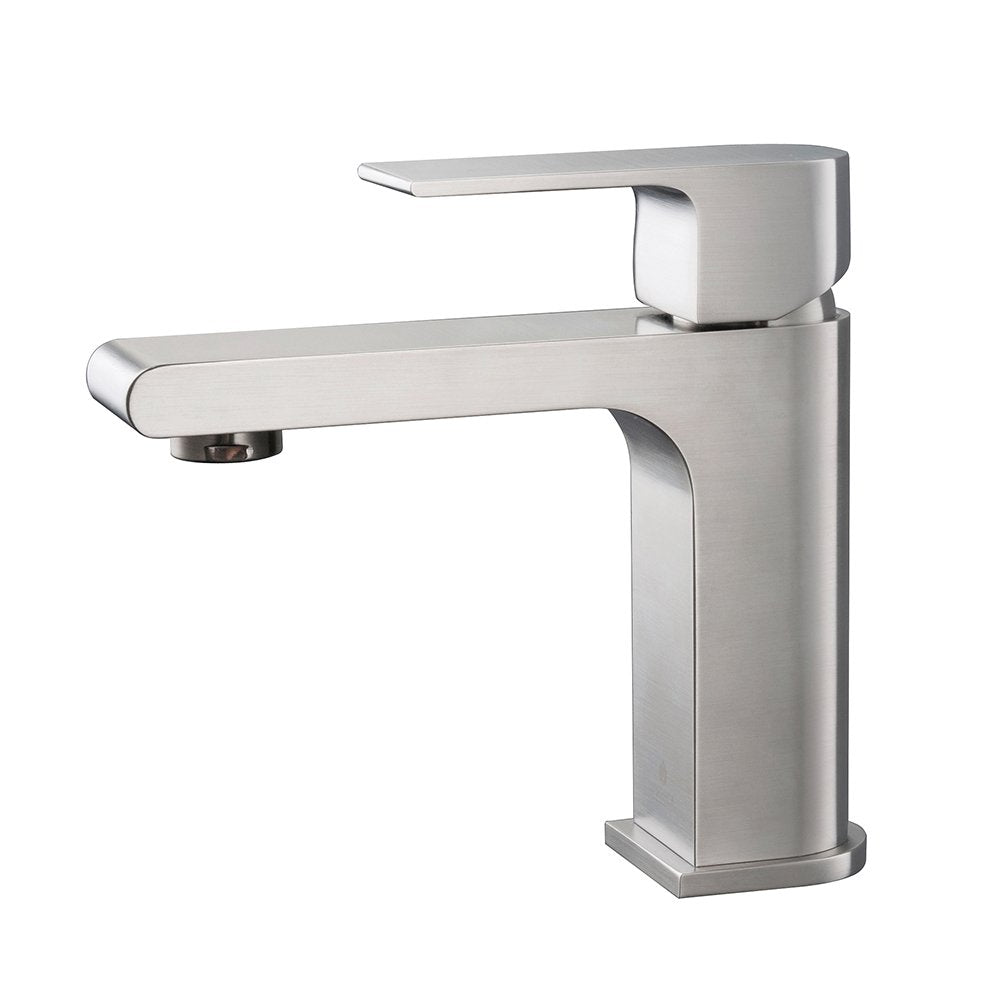 This single hole faucet is made from heavy duty brass with a Brushed Nickel finish. Features ceramic mixing valve for longevity and watertight functionality.
