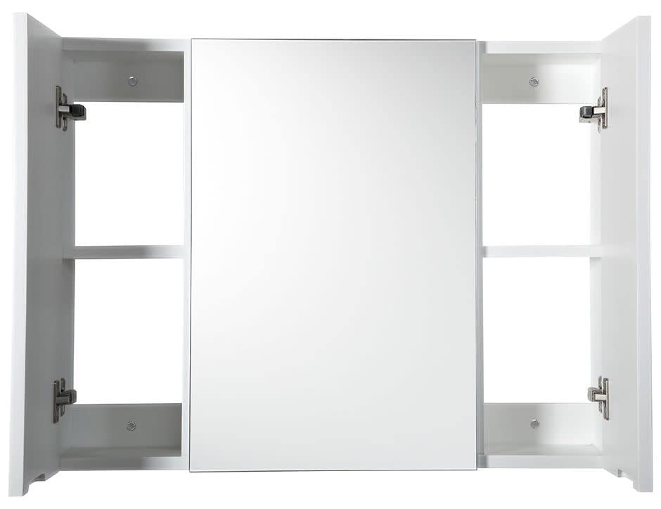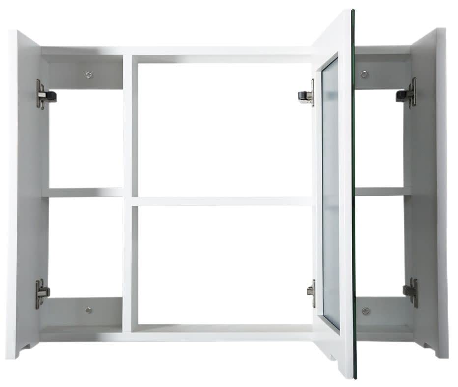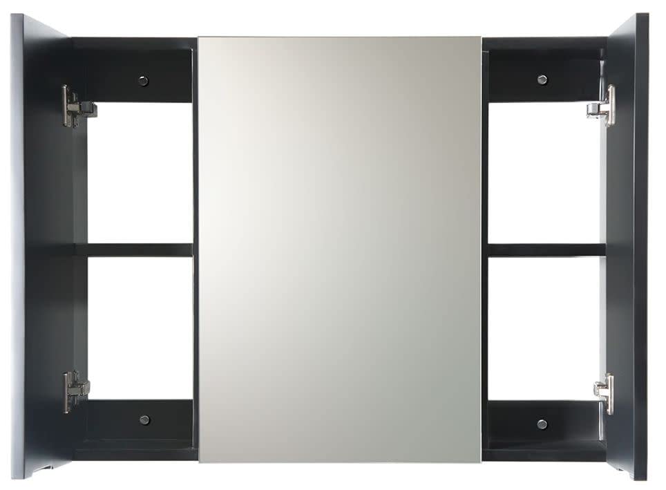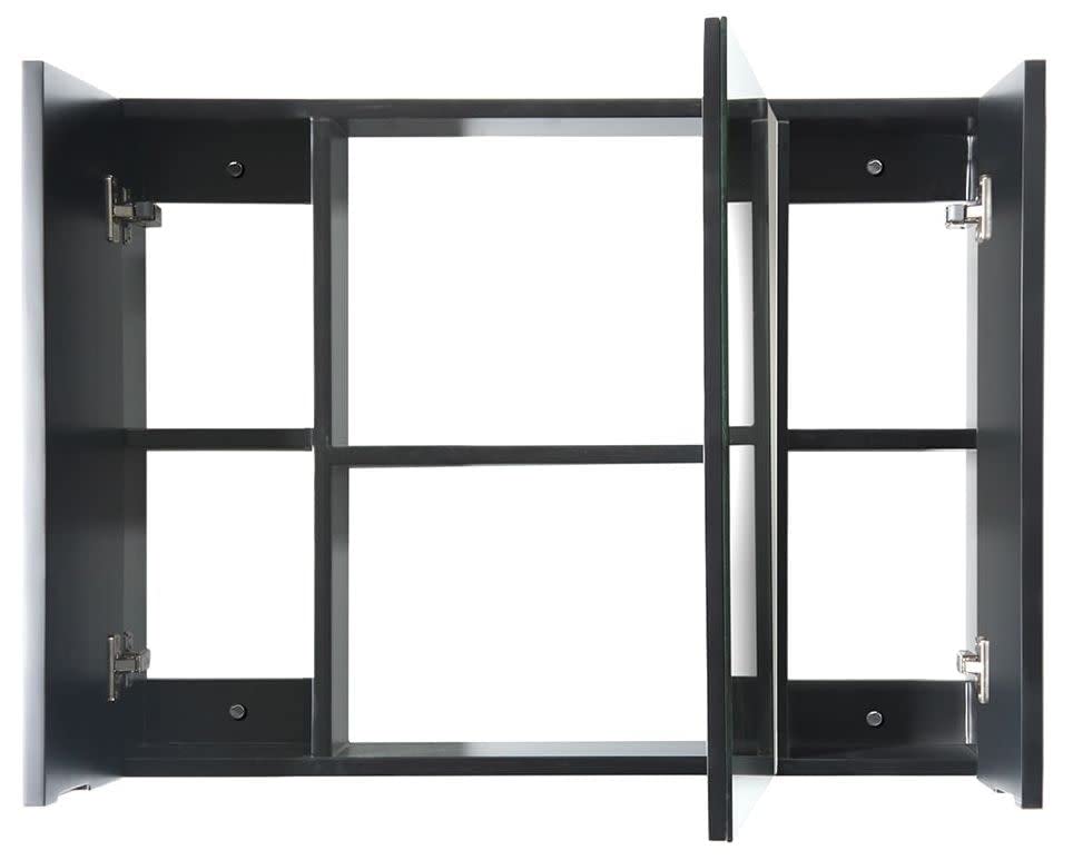 This stylish rectangular medicine cabinet has clean, simple lines and is designed to blend beautifully with any bathroom décor. Made of MDF, this spacious bathroom cabinet has a modern look and a rich Espresso finish. The middle section is mirrored and opens to reveal ample space for everyday necessities. Two side compartments offer additional storage and feature soft-close, hinged doors. Theres a total of six handy compartments within this unit to keep essentials neatly tucked away. This contemporary Fresca Medicine Cabinet measures 32 in width and is also available in White and Gray.