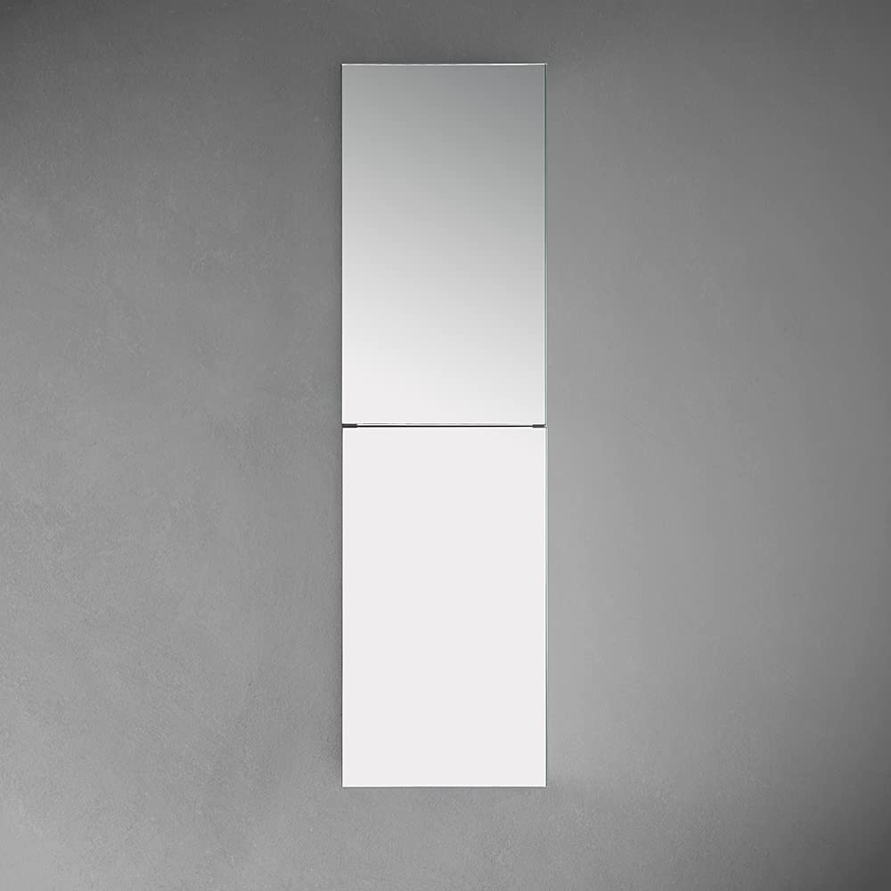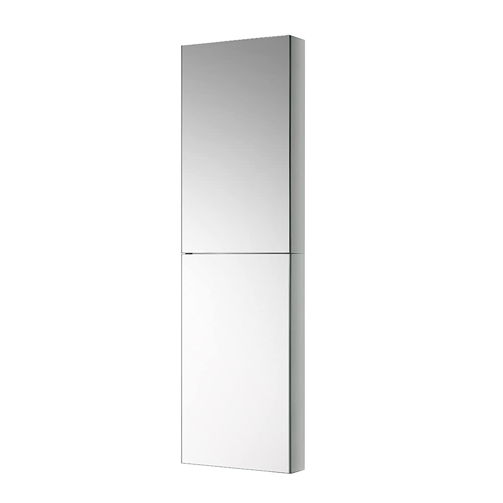 Every inch of this tall Fresca 15 Wide Bathroom Medicine Cabinet is mirrored inside and out to reflect light and give your bathroom a fresh and modern feel. Two doors feature mirrors on both sides, allowing you to keep an eye on your appearance while accessing daily necessities from within the cabinet. The interior back wall of the cabinet is also mirrored and has four adjustable tempered glass shelves that can accommodate items of varying heights. An anodized aluminum frame creates a moisture and dust resistant interior.