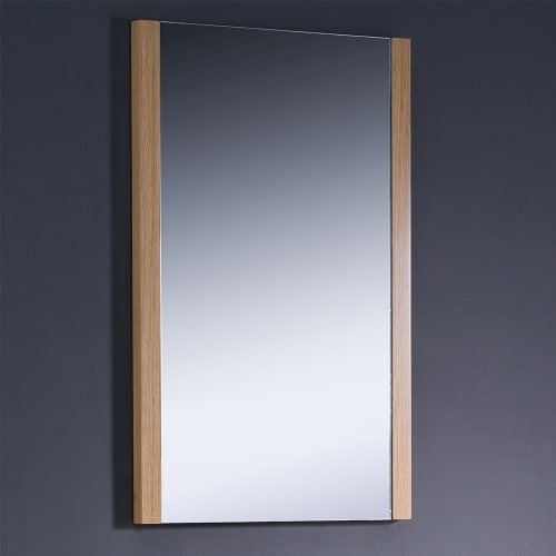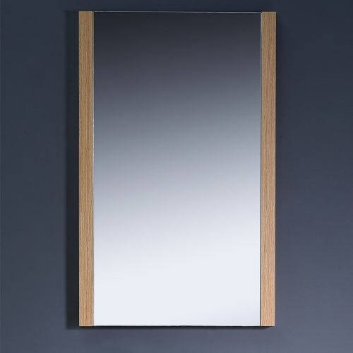 Sleek and modern, the Fresca Torino Mirror breathes new life into bathroom décor. The moment you hang this gorgeous rectangular mirror in your home, everyone will want to know where you got it. This stunning mirror has a contemporary design and a beautiful Gray Oak finish that will complement any bathroom. The glass is recessed into a unique frame that hugs the mirror along the sides. Both the top and bottom are frameless, causing the mirror to reflect additional light, while creating the illusion of a brighter, more spacious environment. This Fresca Torino Mirror is also available in Espresso, Light Oak or White finishes. It measures 21 in width and is available in varies sizes.