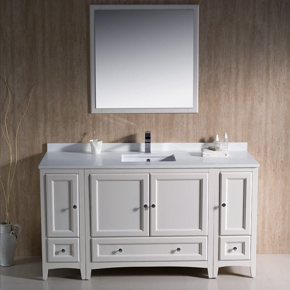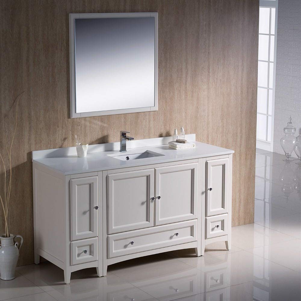Blending clean lines with classic wood, the Fresca Oxford Traditional Bathroom Vanity is a must-have for modern and traditional bathrooms alike. The vanity frame itself features solid wood in a stunning antique white finish that's sure to stand out in any bathroom and match all interiors. Available in many different finishes and configurations.