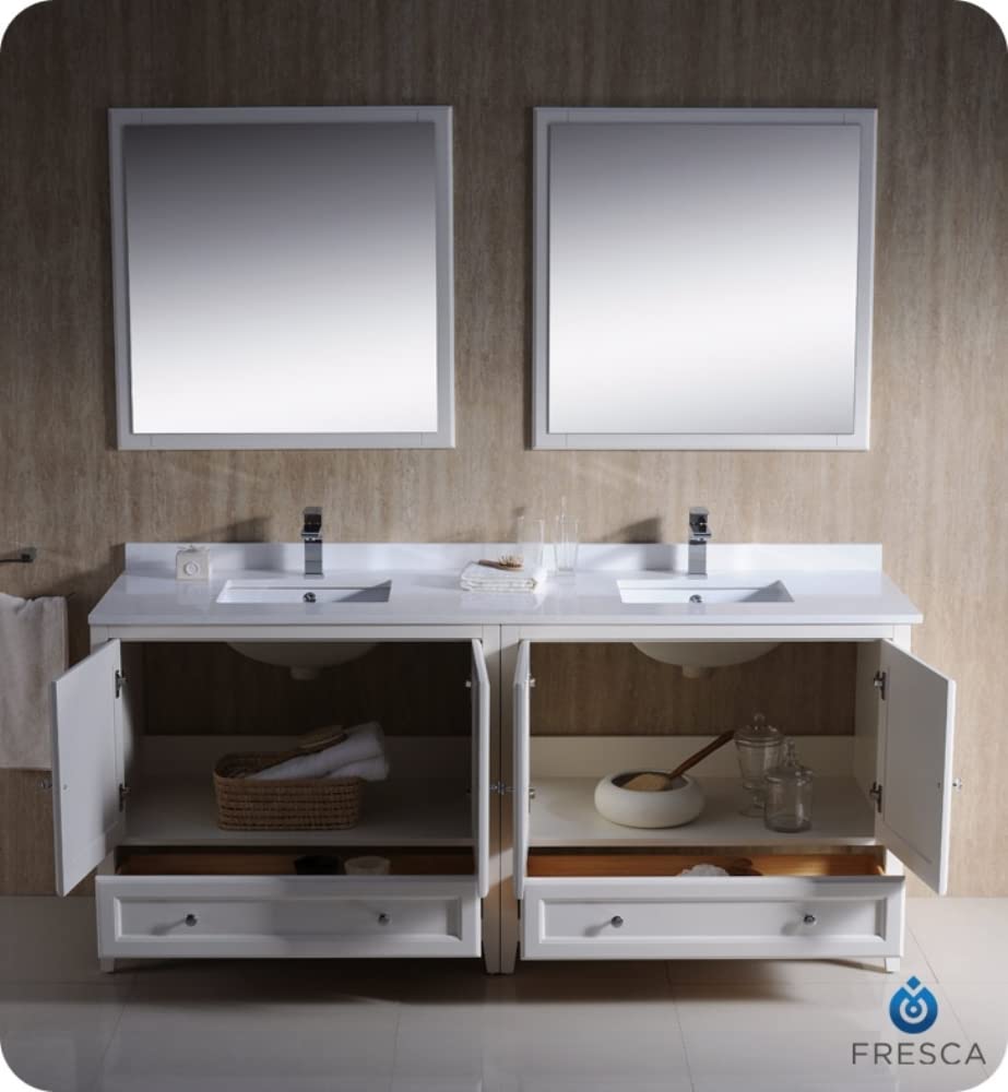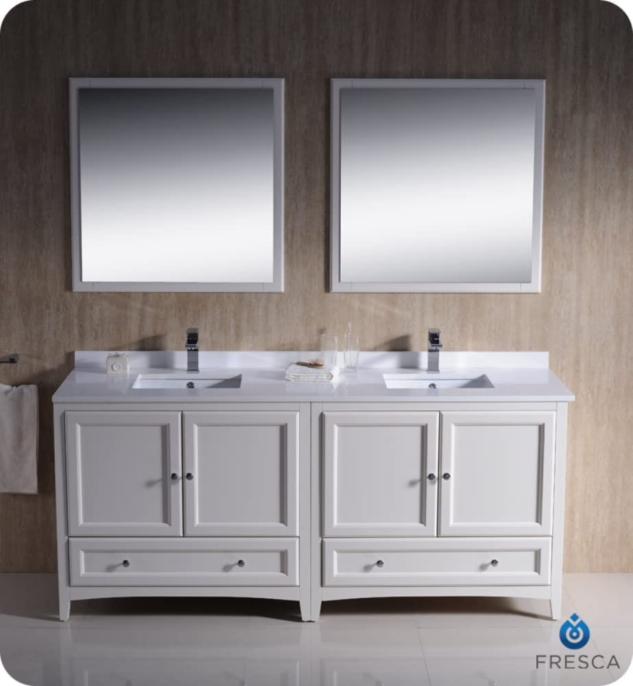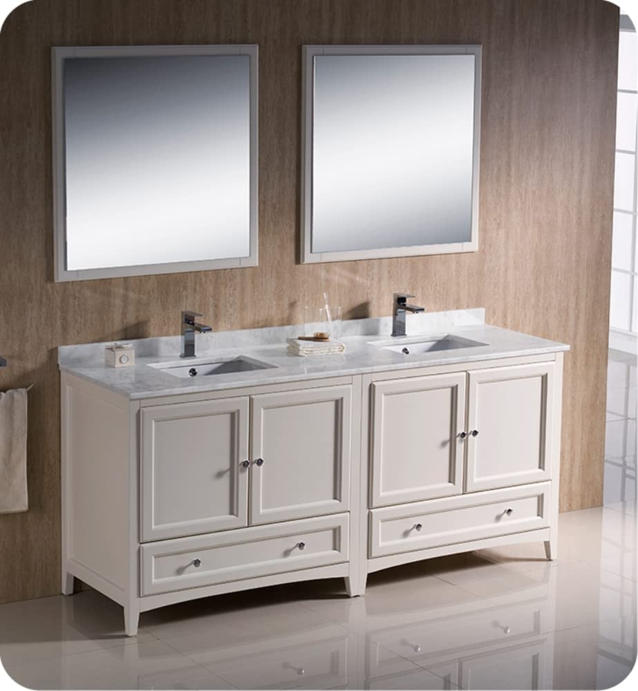 Fresca FVN20-3636AW Fresca Oxford 72" Antique White Traditional Double Sink Bathroom Vanity