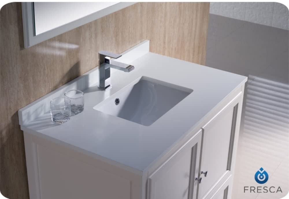 Blending clean lines with classic wood, the Fresca Oxford Traditional Bathroom Vanity is a must-have for modern and traditional bathrooms alike. The vanity frame itself features solid wood in a stunning antique white finish that's sure to stand out in any bathroom and match all interiors. Available in many different finishes and configurations.