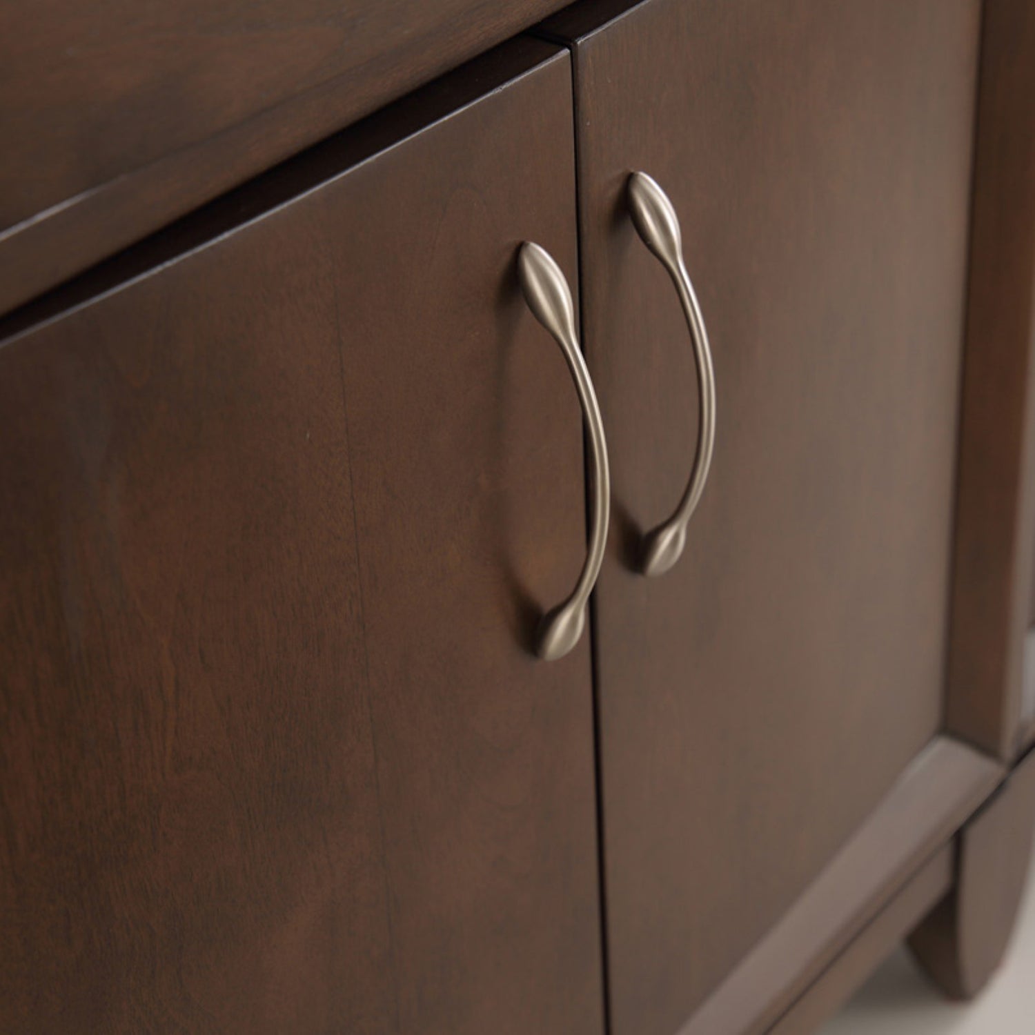 - Unique Bow Front Drawer and Door Design w/ Satin Nickel Handles