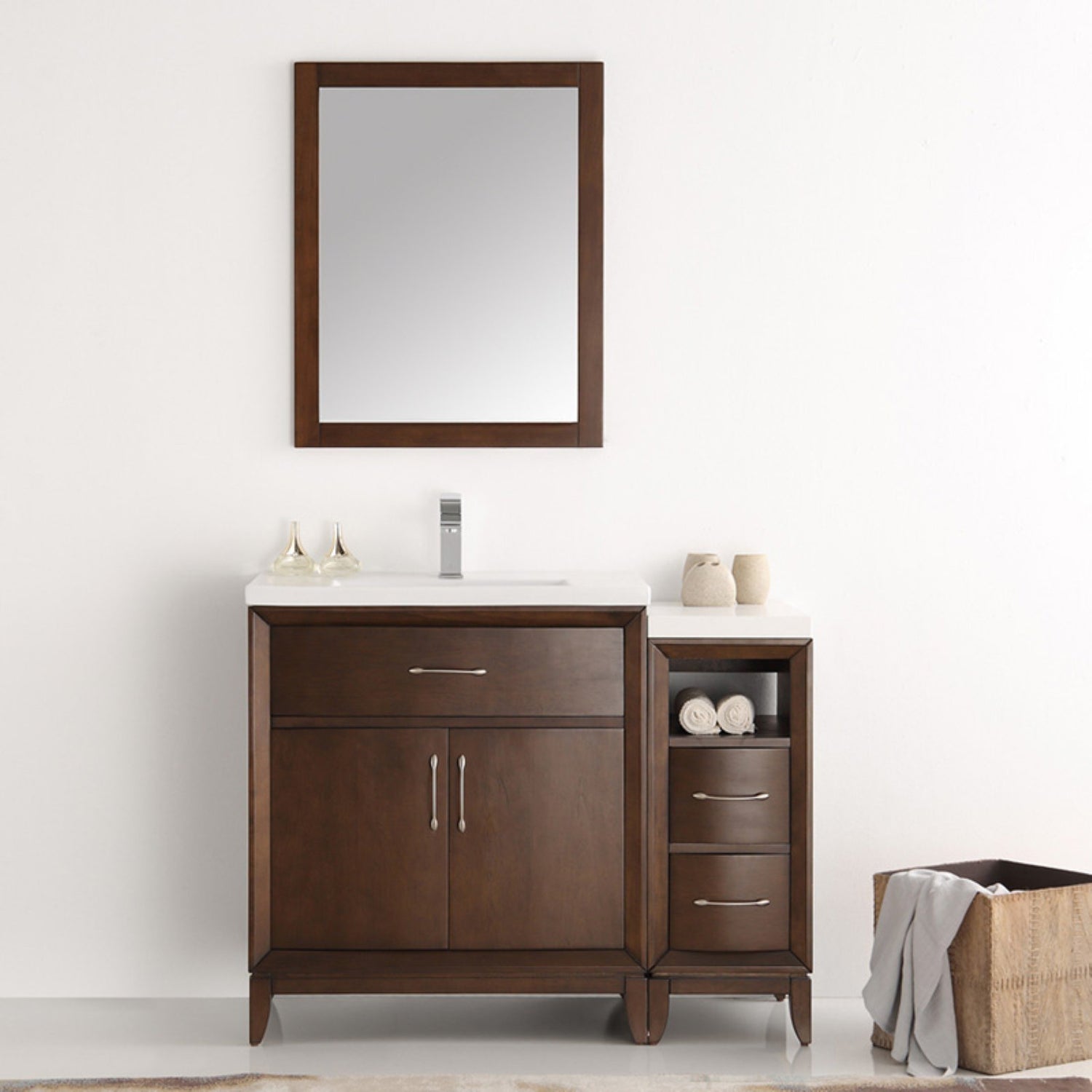 - Vanity Materials: Solid Wood Veneer over Solid Wood Frame with MDF Panels