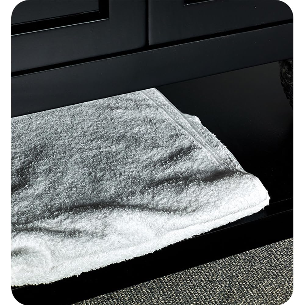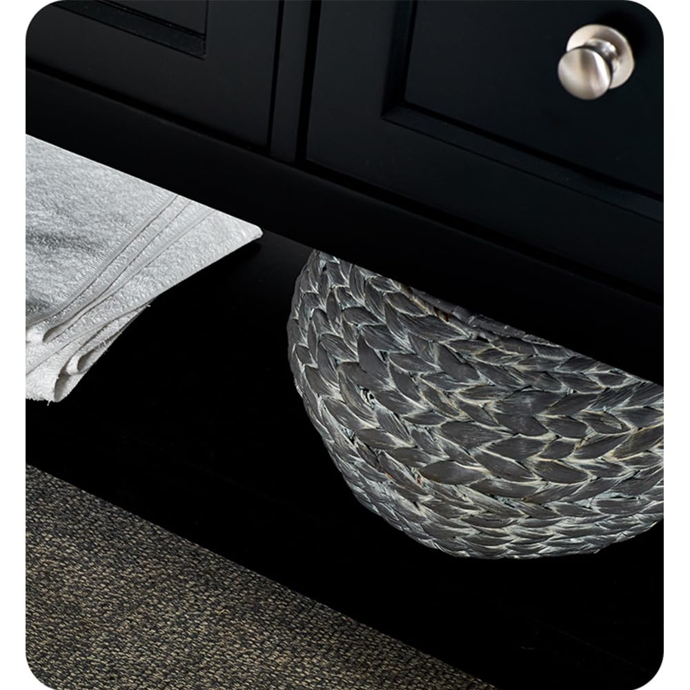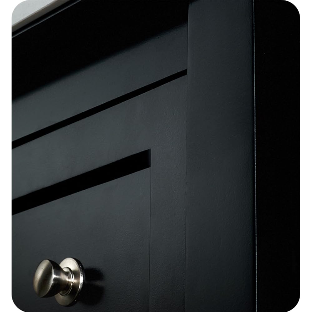 Add instant style and classic charm to your bathroom with the clean, timeless design of our Fresca Manchester 36 Traditional Bathroom Vanity. This beautifully constructed vanity features panelled solid wood doors with soft close hinges to ensure they close silently and effortlessly every time. There are two soft close drawers that offer ample space for your bathroom essentials and an open bottom shelf for storing towels and additional bath supplies. This traditional vanity has an elegant, painted Black finish and brushed nickel handles. The lovely white ceramic sink has a rounded basin and is equipped with an integrated overflow. The countertop has been pre-drilled to accommodate a single hole faucet (included). A p-trap, pop-up drain and installation hardware are also included. This stylish vanity comes with a matching Fresca Manchester 30 Traditional Bathroom Mirror to complete the look. The solid wood mirror has a simple yet elegant frame and features a painted Black finish.