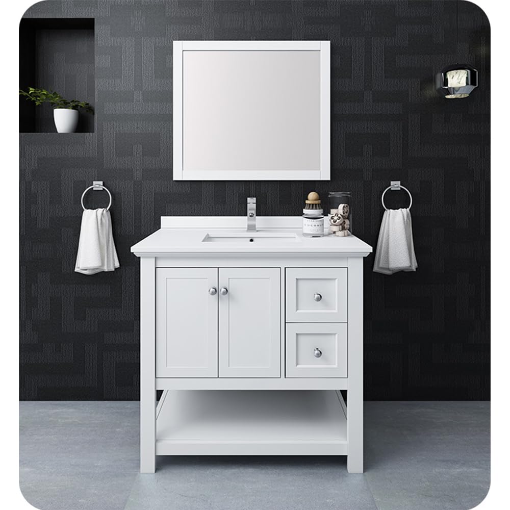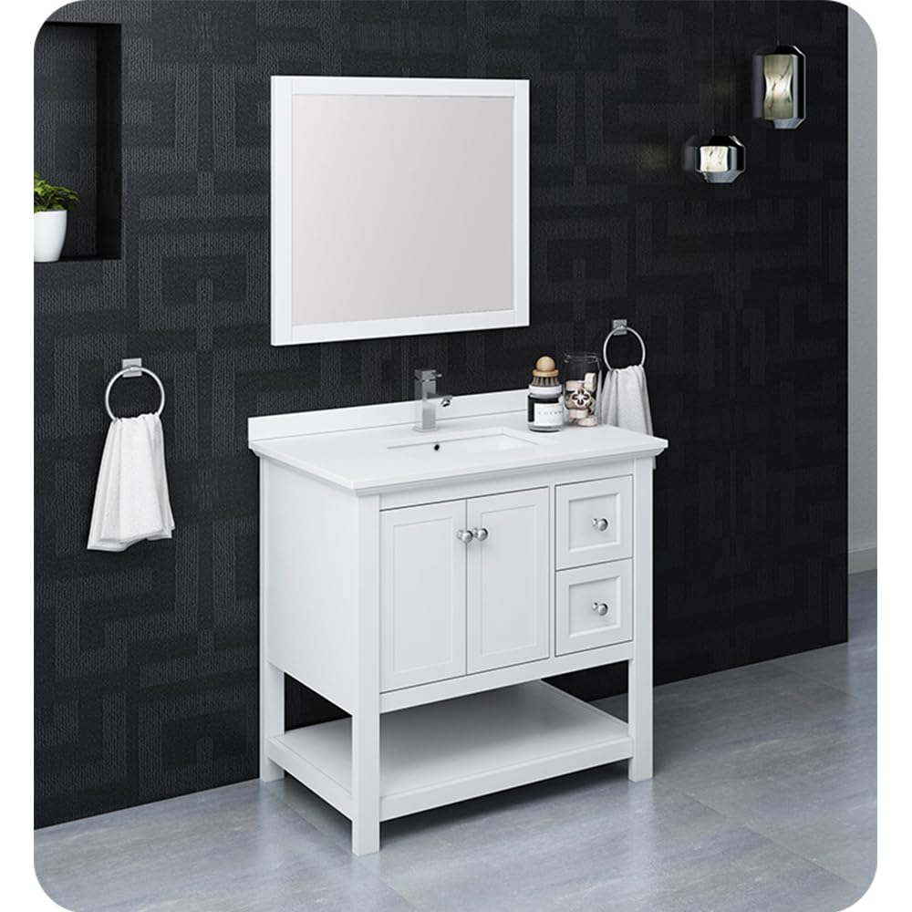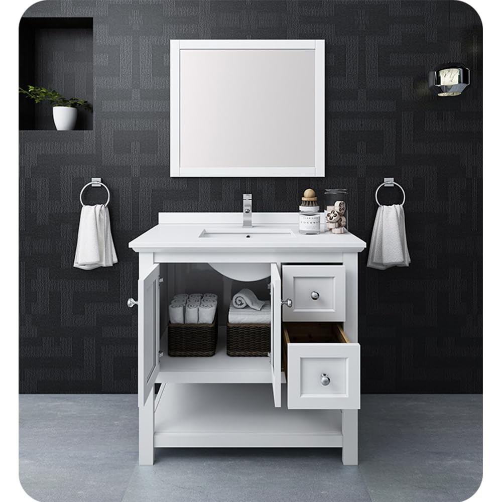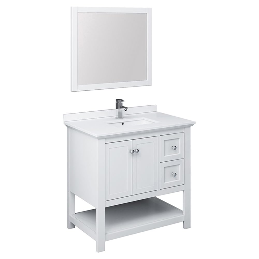Fresca FVN2336WH Fresca Manchester 36" White Traditional Bathroom Vanity w/ Mirror