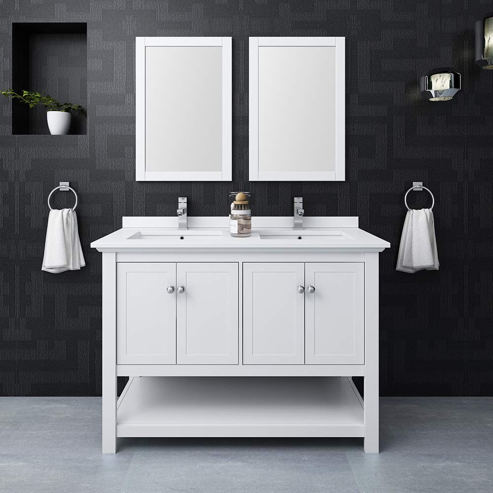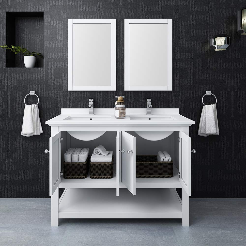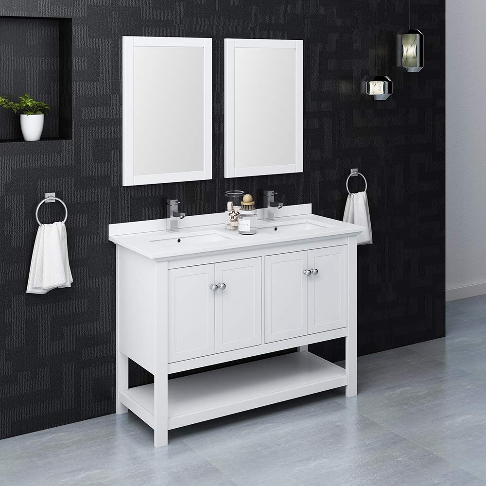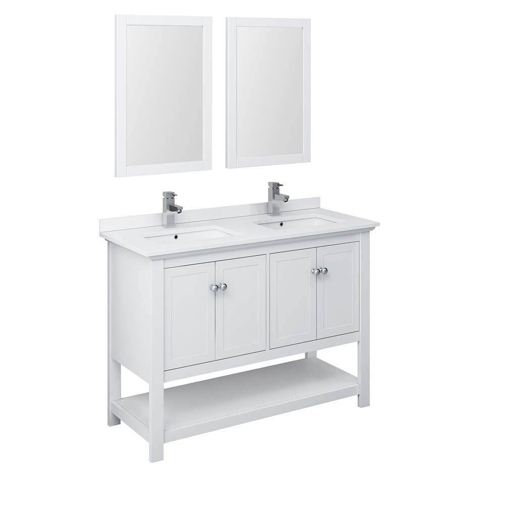 Fresca FVN2348WH-D Fresca Manchester 48" White Traditional Double Sink Bathroom Vanity w/ Mirrors