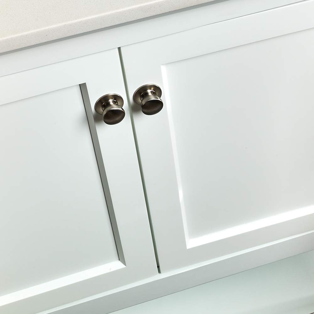 Brighten your bathroom with the clean, timeless design of our Fresca Manchester 48 Traditional Double Sink Bathroom Vanity. This beautifully constructed vanity features solid wood doors that open to reveal two roomy compartments for organizing products of varying sizes and keeping all of your bathroom essentials within reach. Soft close hinges ensure the doors close silently and effortlessly every time. Open bottom shelves are ideal for storing towels and additional bath supplies. Designed to complement any décor scheme, this traditional vanity has an elegant, painted White finish and brushed nickel handles. Gracing the top of the vanity is a lovely integrated white ceramic double sink and countertop which adds to its clean aesthetic. Designed for durability and style, each sink has a rounded basin and is equipped with an integrated overflow. The countertop has been pre-drilled to accommodate single hole faucets (included). P-traps, pop-up drains and installation hardware are also included. This stylish vanity comes with two matching Fresca Manchester 20 Traditional Bathroom Mirrors to complete the look. The solid wood mirrors have simple yet elegant frames and feature a painted White finish.