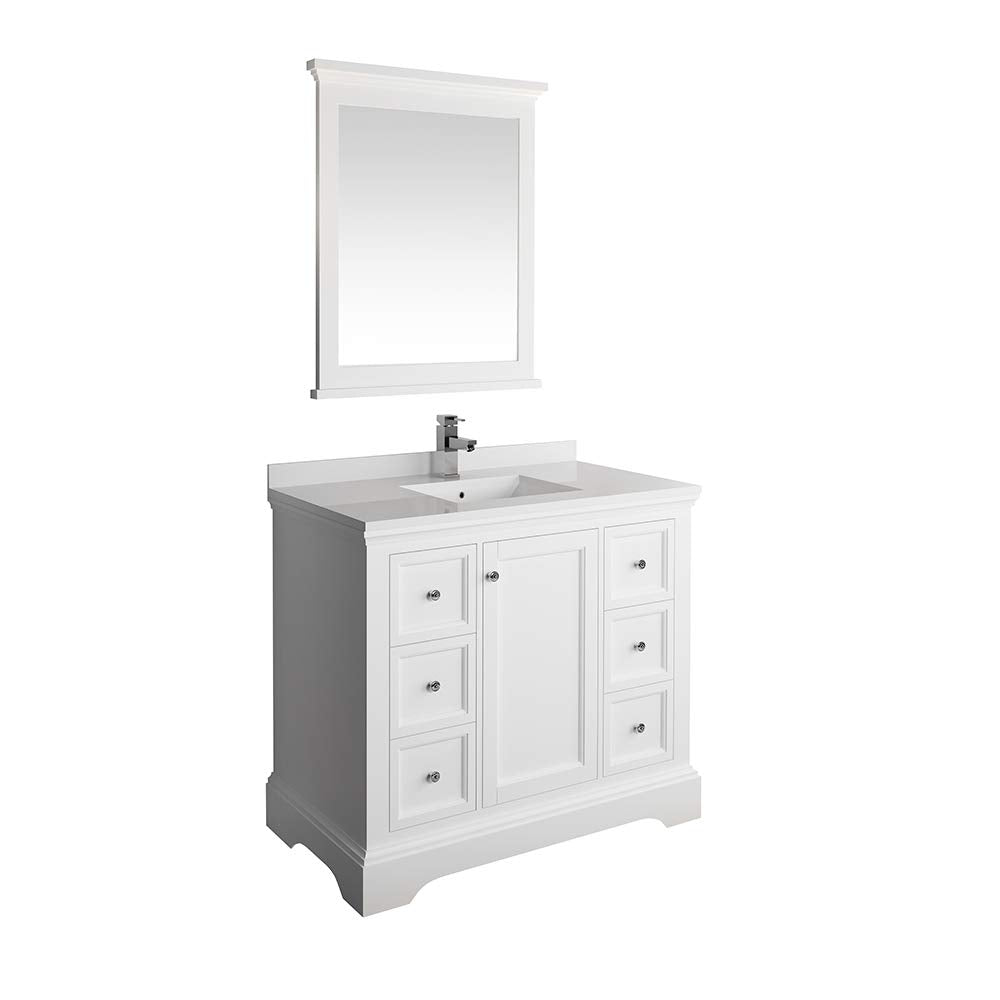 Fresca FVN2440WHM Fresca Windsor 40" Matte White Traditional Bathroom Vanity w/ Mirror