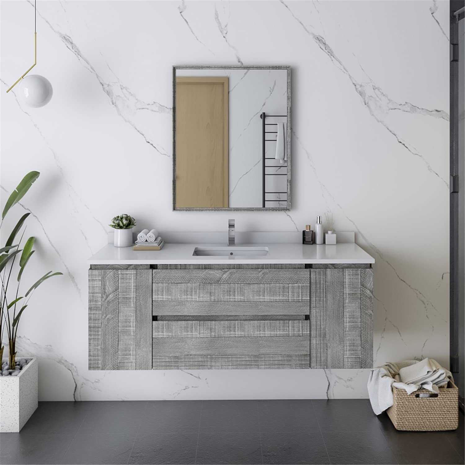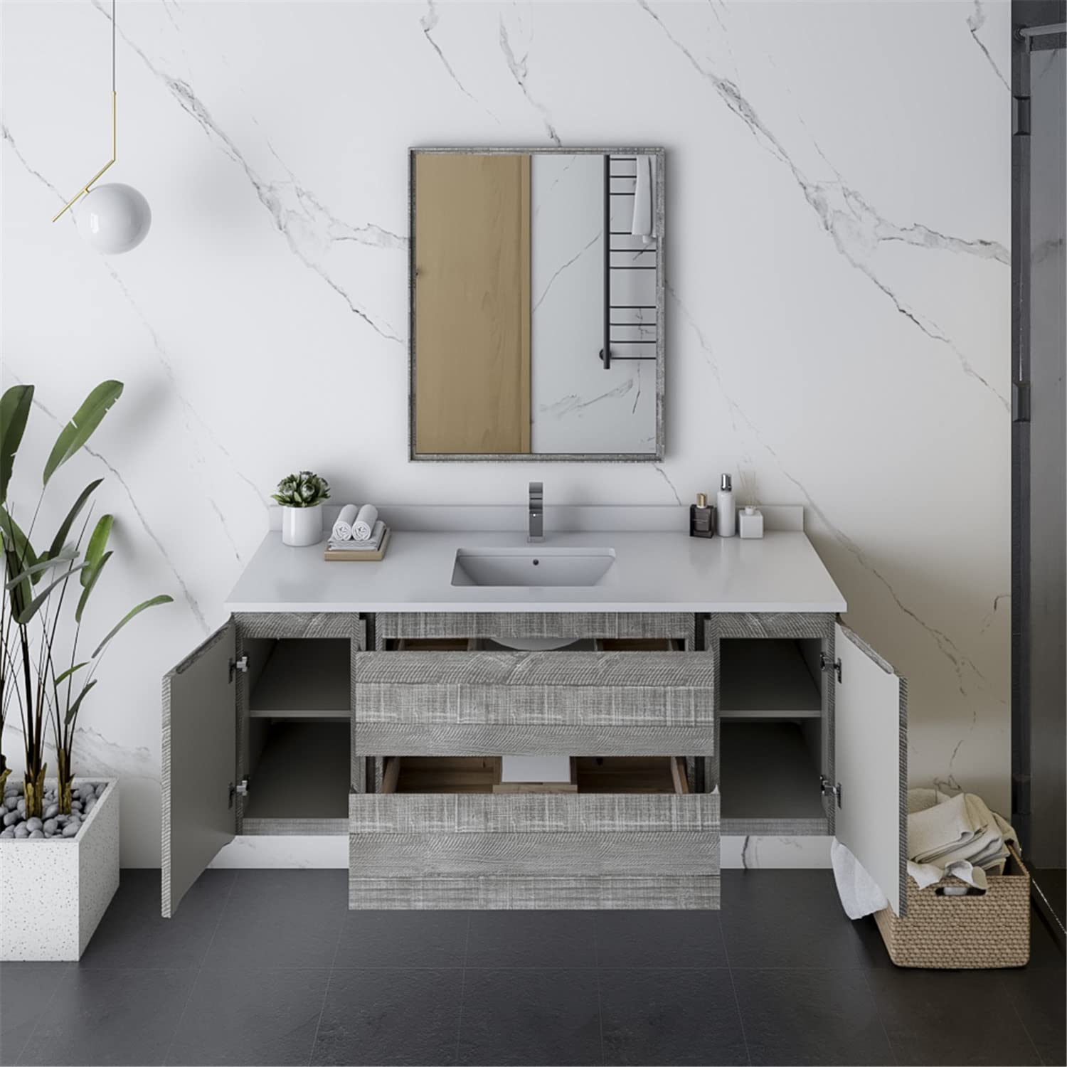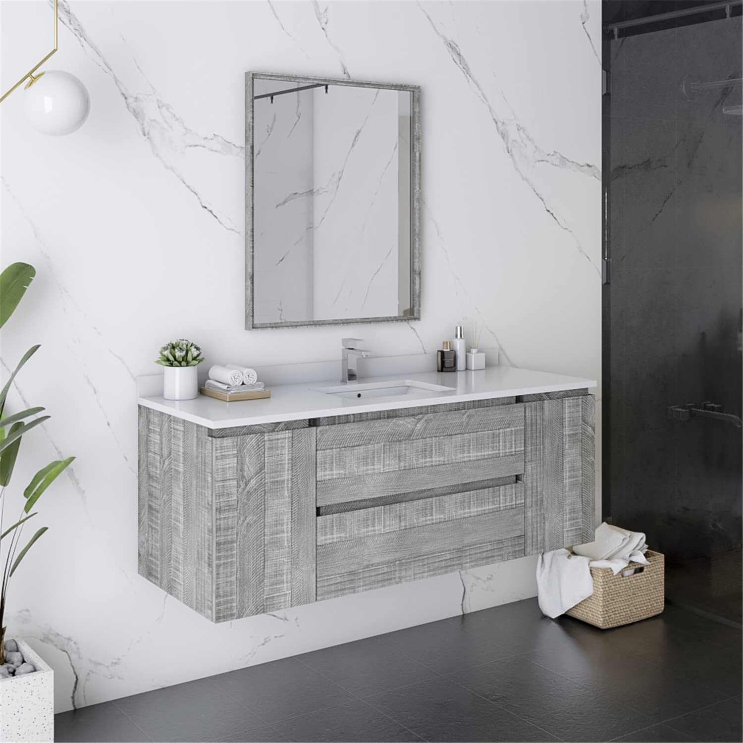 Fresca FVN31-123012ASH Fresca Formosa 54" Wall Hung Modern Bathroom Vanity w/ Mirror in Ash