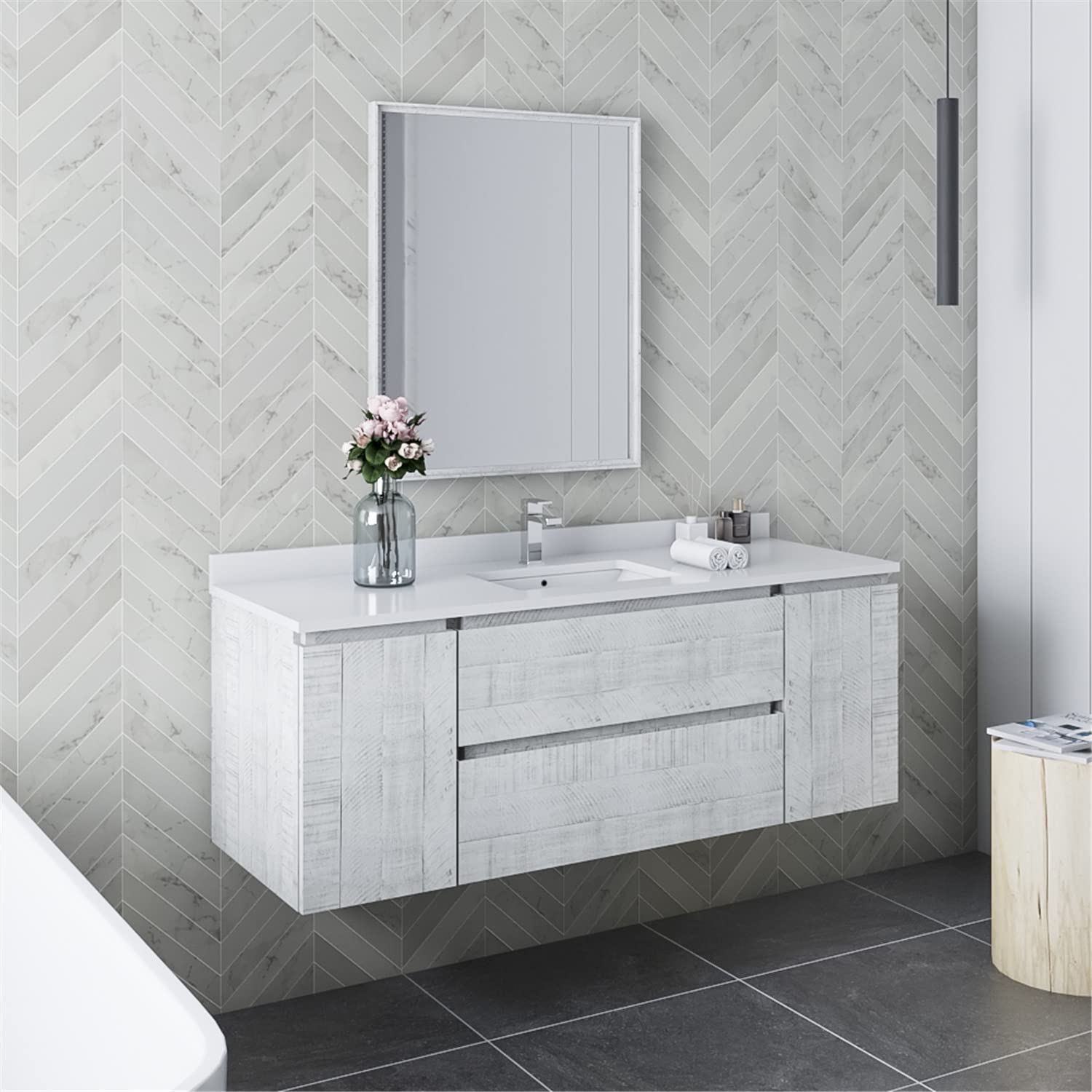 Fresca FVN31-123012RWH Fresca Formosa 54" Wall Hung Modern Bathroom Vanity w/ Mirror in Rustic White