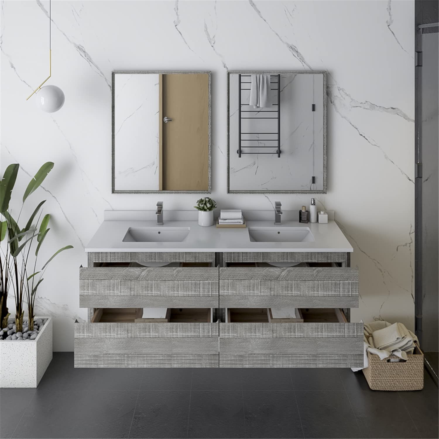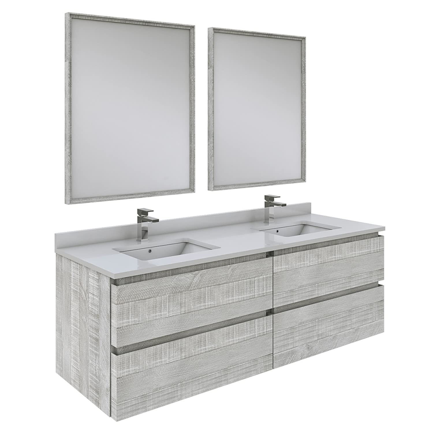 Fresca FVN31-3030ASH Fresca Formosa 60" Wall Hung Double Sink Modern Bathroom Vanity w/ Mirrors in Ash