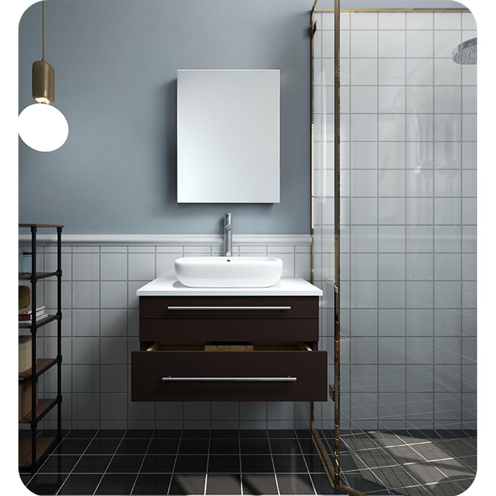 Fresca FVN6130ES-VSL Fresca Lucera 30" Espresso Wall Hung Vessel Sink Modern Bathroom Vanity w/ Medicine Cabinet