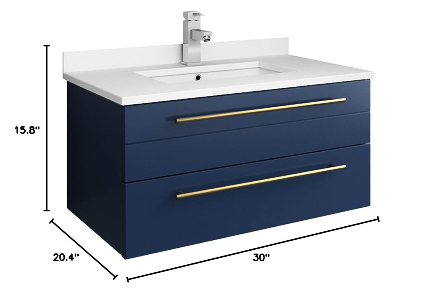 Fresca FVN6130RBL-UNS Fresca Lucera 30" Royal Blue Wall Hung Undermount Sink Modern Bathroom Vanity w/ Medicine Cabinet