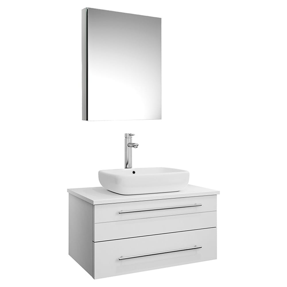 Fresca FVN6130WH-VSL Fresca Lucera 30" White Wall Hung Vessel Sink Modern Bathroom Vanity w/ Medicine Cabinet