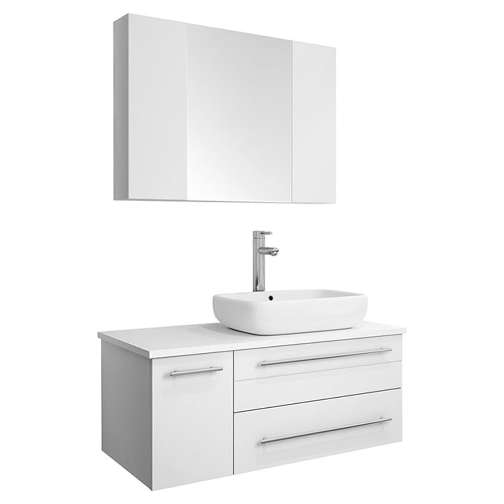 Fresca FVN6136WH-VSL-R Fresca Lucera 36" White Wall Hung Vessel Sink Modern Bathroom Vanity w/ Medicine Cabinet - Right Version
