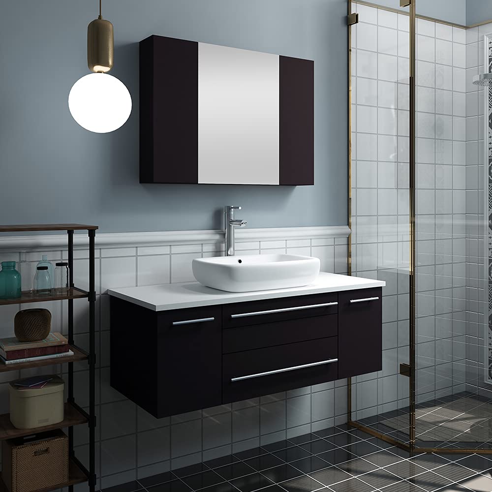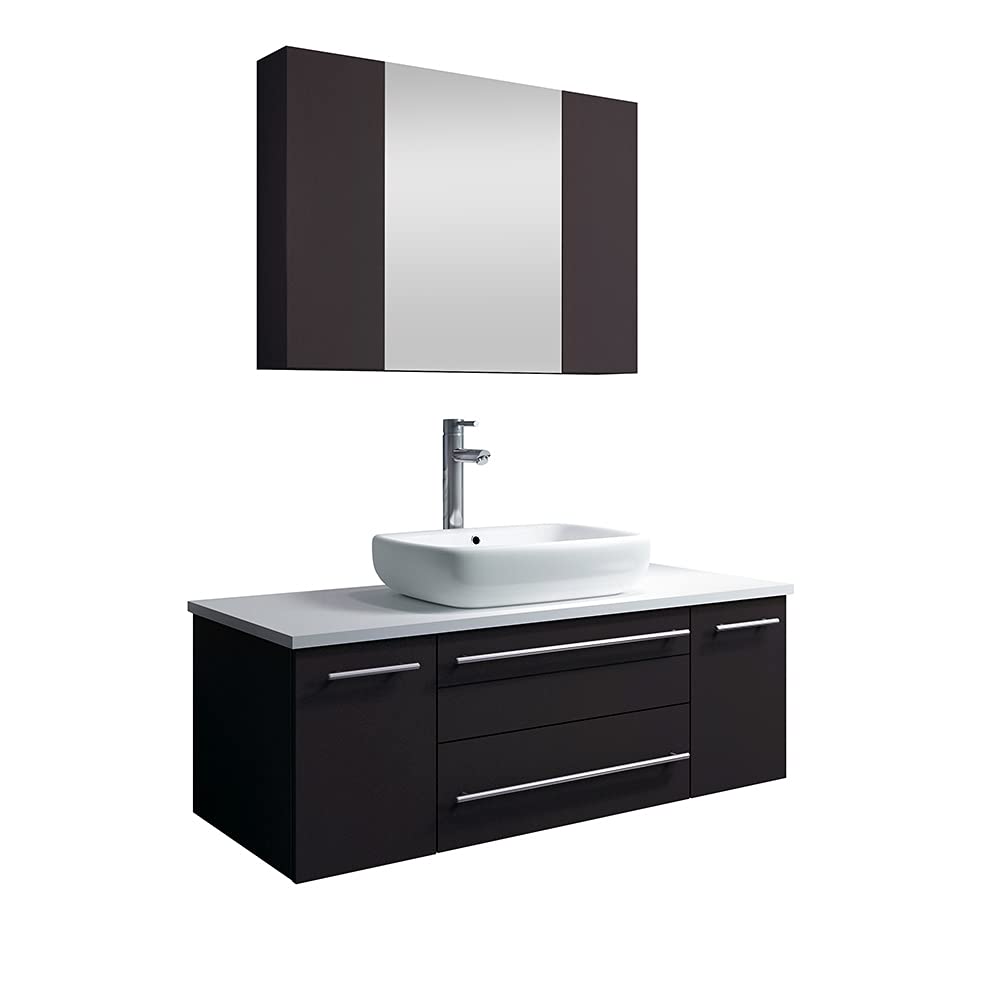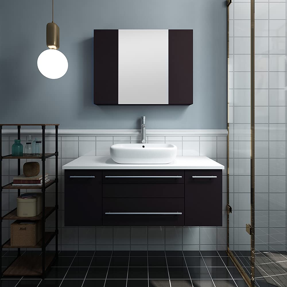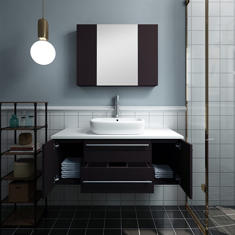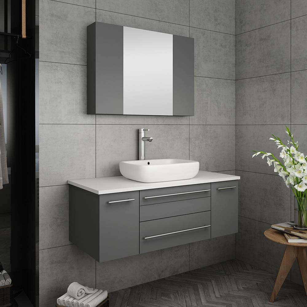 Fresca FVN6142GR-VSL Fresca Lucera 42" Gray Wall Hung Vessel Sink Modern Bathroom Vanity w/ Medicine Cabinet