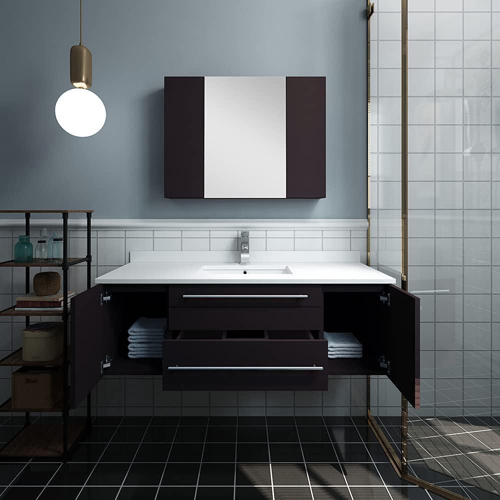 Fresca FVN6148ES-UNS Fresca Lucera 48" Espresso Wall Hung Undermount Sink Modern Bathroom Vanity w/ Medicine Cabinet