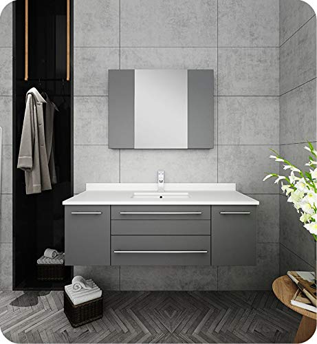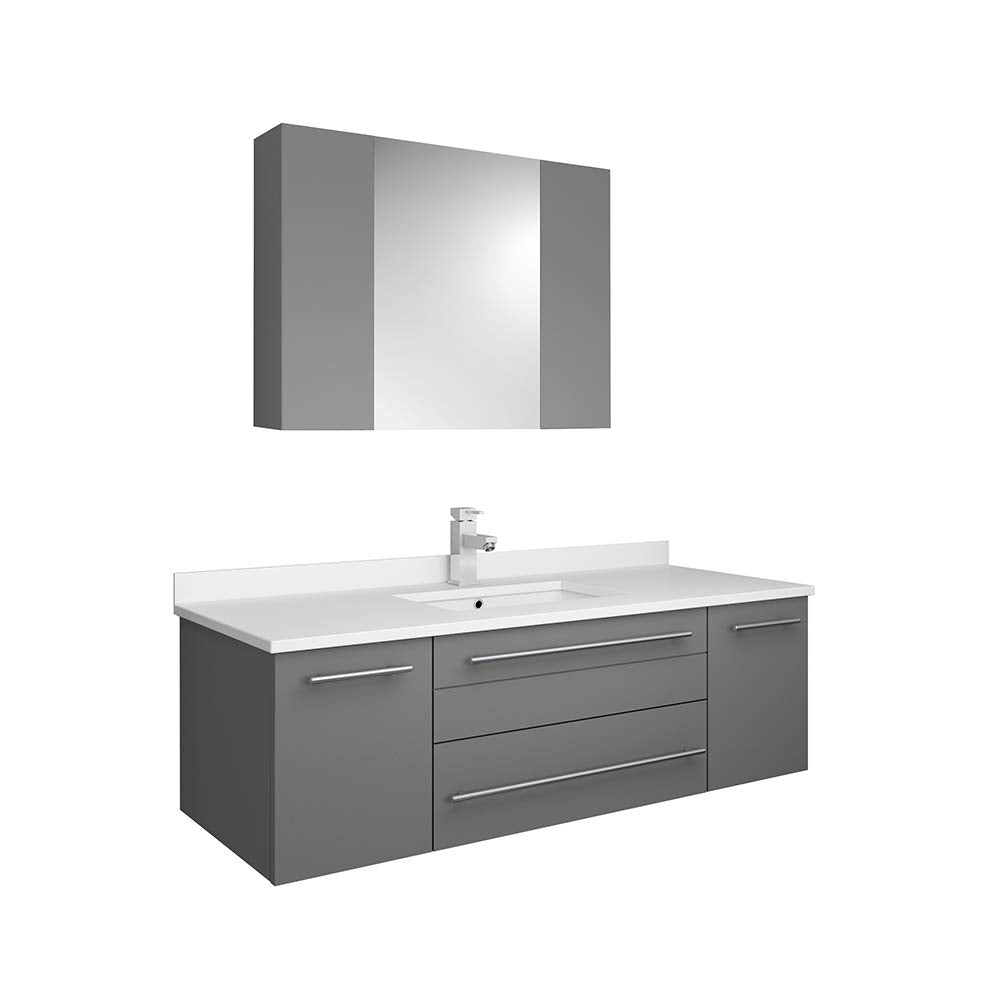 Fresca FVN6148GR-UNS Fresca Lucera 48" Gray Wall Hung Undermount Sink Modern Bathroom Vanity w/ Medicine Cabinet