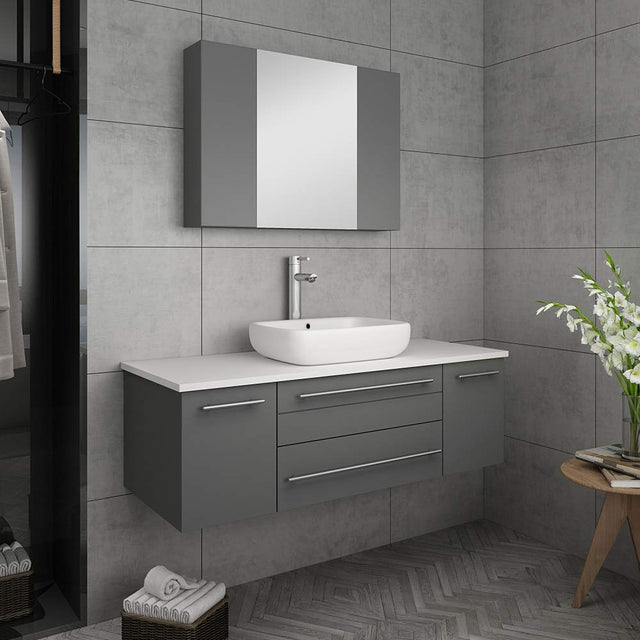 Fresca FVN6148GR-VSL Fresca Lucera 48" Gray Wall Hung Vessel Sink Modern Bathroom Vanity w/ Medicine Cabinet