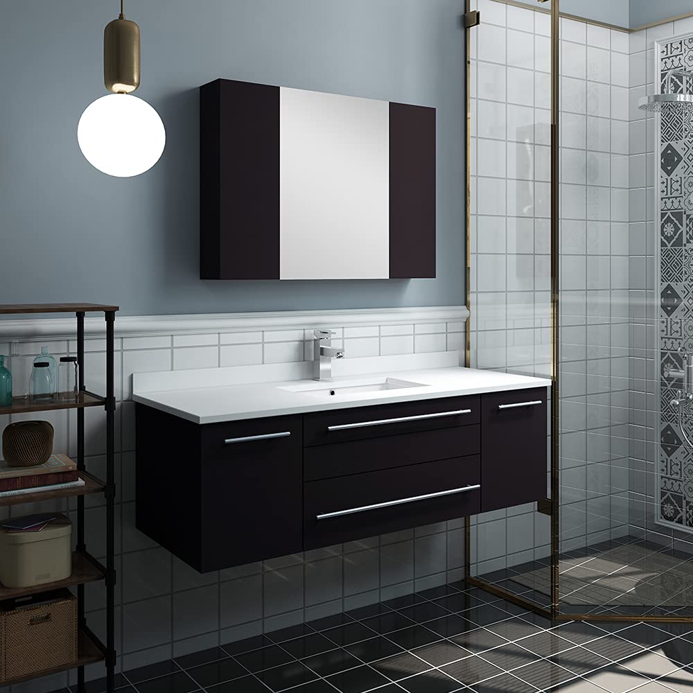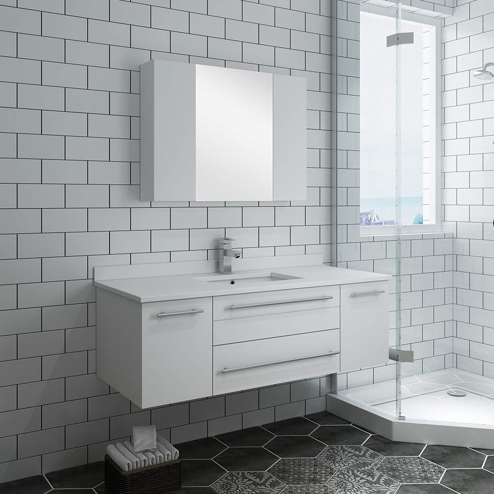Fresca FVN6148WH-UNS Fresca Lucera 48" White Wall Hung Undermount Sink Modern Bathroom Vanity w/ Medicine Cabinet