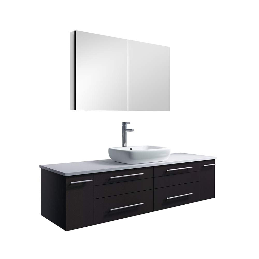 Fresca FVN6160ES-VSL Fresca Lucera 60" Espresso Wall Hung Single Vessel Sink Modern Bathroom Vanity w/ Medicine Cabinet