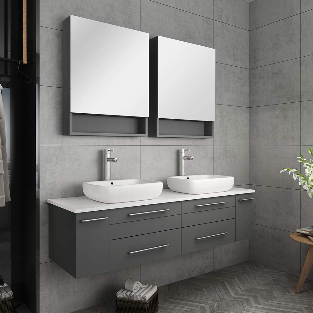 Fresca FVN6160GR-VSL-D Fresca Lucera 60" Gray Wall Hung Double Vessel Sink Modern Bathroom Vanity w/ Medicine Cabinets