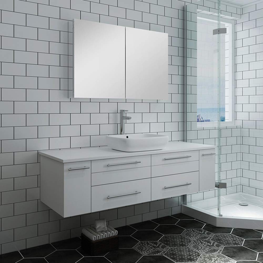 Fresca FVN6160WH-VSL Fresca Lucera 60" White Wall Hung Single Vessel Sink Modern Bathroom Vanity w/ Medicine Cabinet