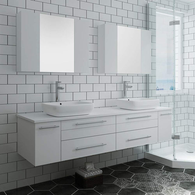 Fresca FVN6172WH-VSL-D Fresca Lucera 72" White Wall Hung Double Vessel Sink Modern Bathroom Vanity w/ Medicine Cabinets