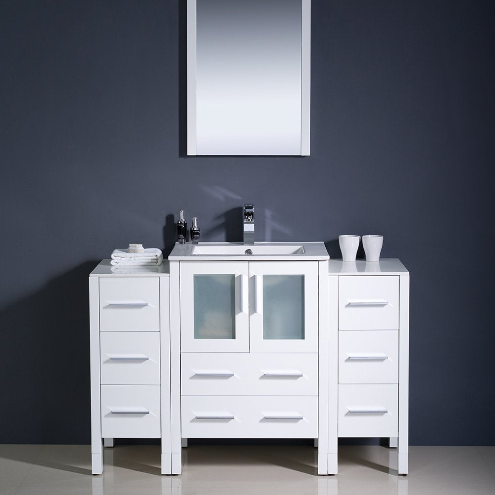 Fresca FVN62-122412WH-UNS Fresca Torino 48" White Modern Bathroom Vanity w/ 2 Side Cabinets & Integrated Sink