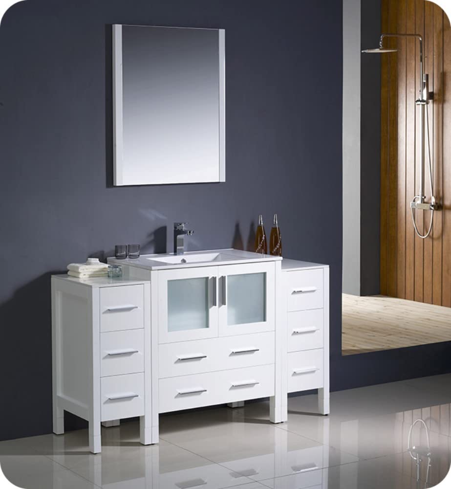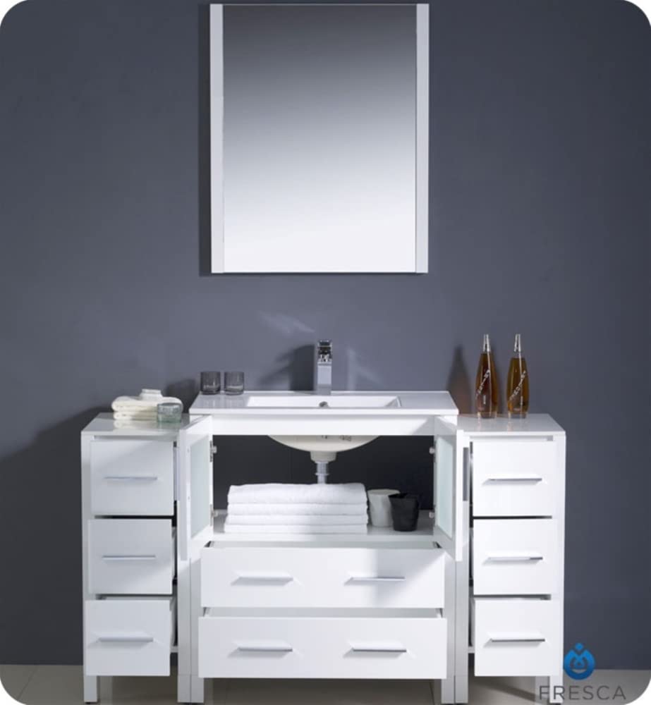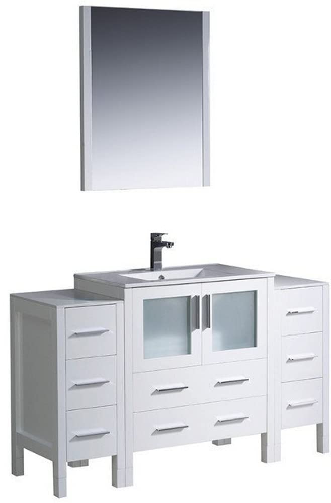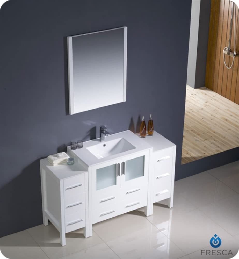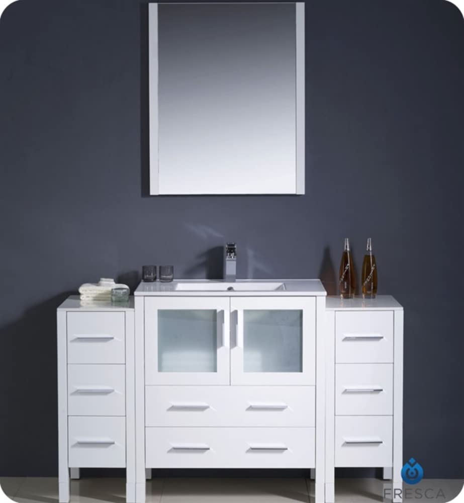 Fresca FVN62-123012WH-UNS Fresca Torino 54" White Modern Bathroom Vanity w/ 2 Side Cabinets & Integrated Sink