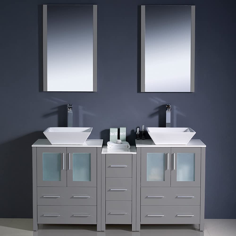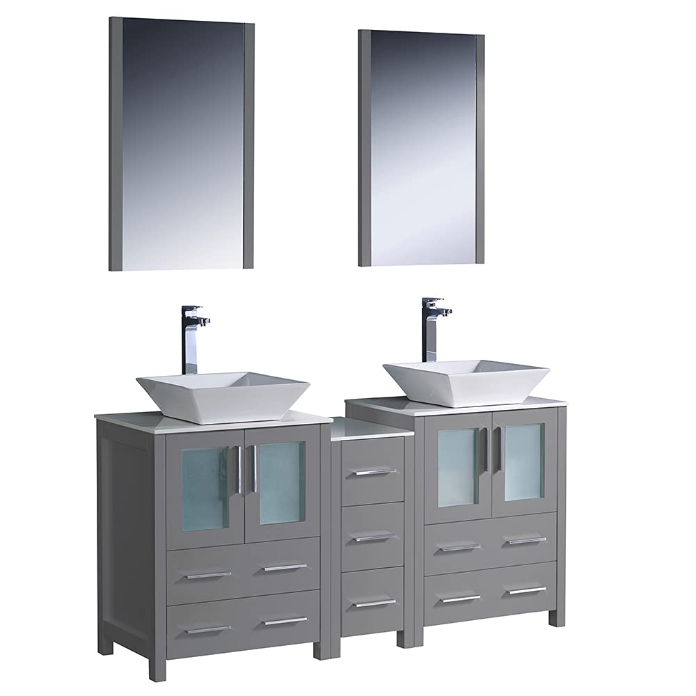 Fresca FVN62-241224GR-VSL Fresca Torino 60" Gray Modern Double Sink Bathroom Vanity w/ Side Cabinet & Vessel Sinks