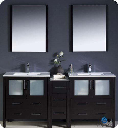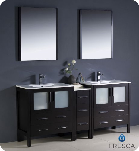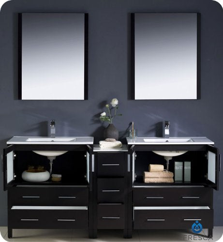 Fresca FVN62-301230ES-UNS Fresca Torino 72" Espresso Modern Double Sink Bathroom Vanity w/ Side Cabinet & Integrated Sinks