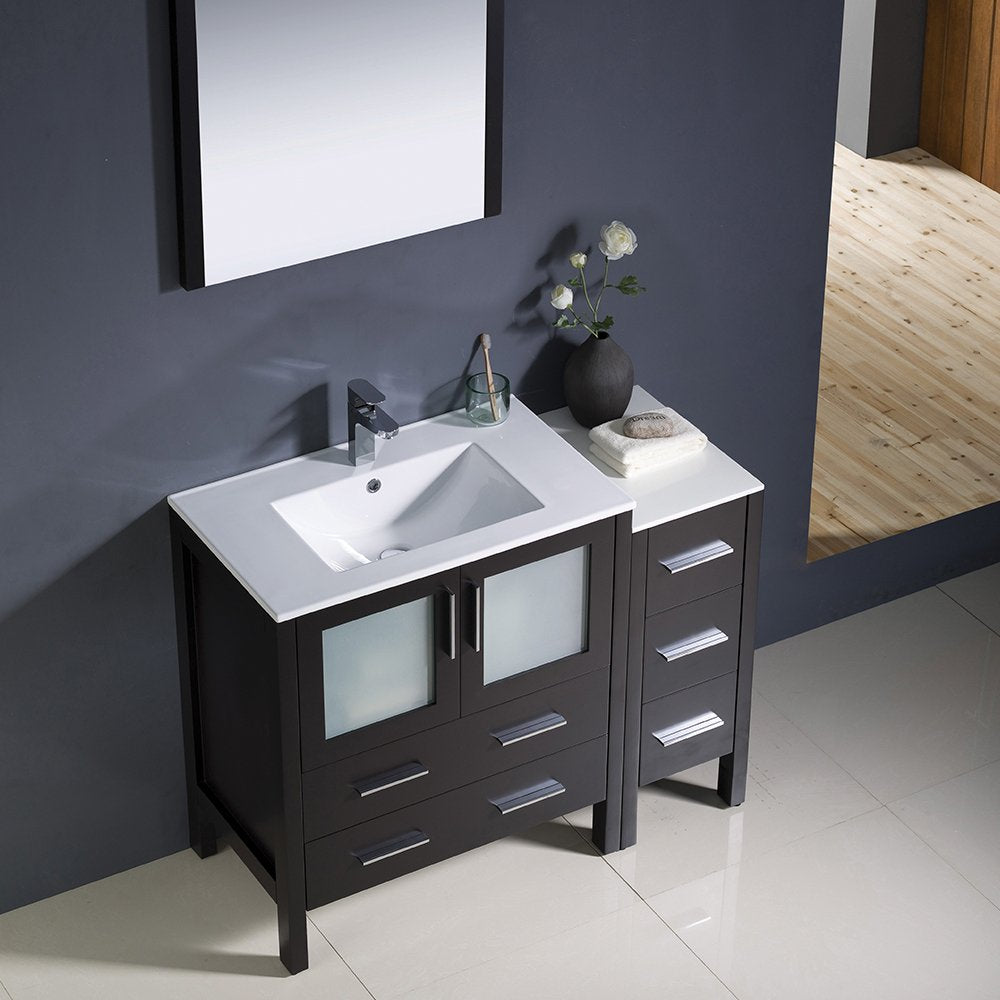 Fresca FVN62-3012ES-UNS Fresca Torino 42" Espresso Modern Bathroom Vanity w/ Side Cabinet & Integrated Sink