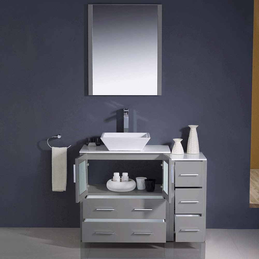 Fresca FVN62-3012GR-VSL Fresca Torino 42" Gray Modern Bathroom Vanity w/ Side Cabinet & Vessel Sink