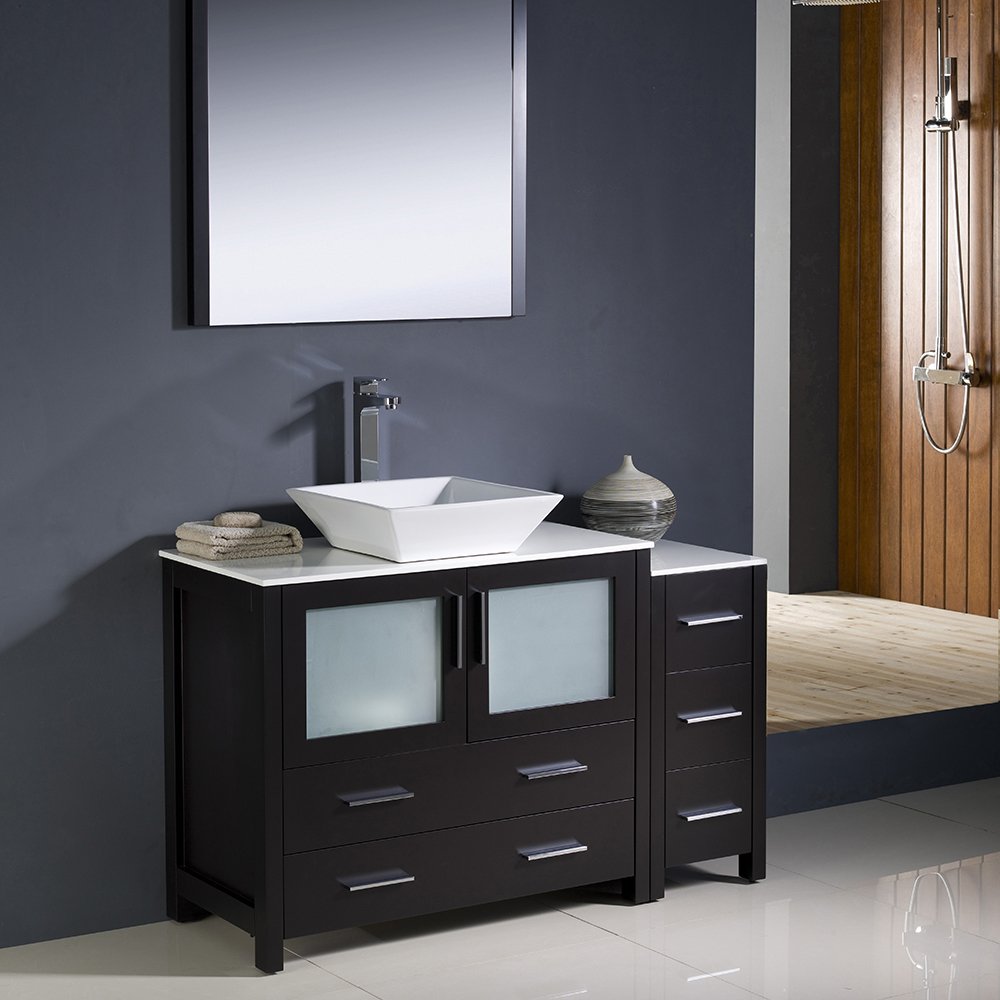 Fresca FVN62-3612ES-VSL Fresca Torino 48" Espresso Modern Bathroom Vanity w/ Side Cabinet & Vessel Sink